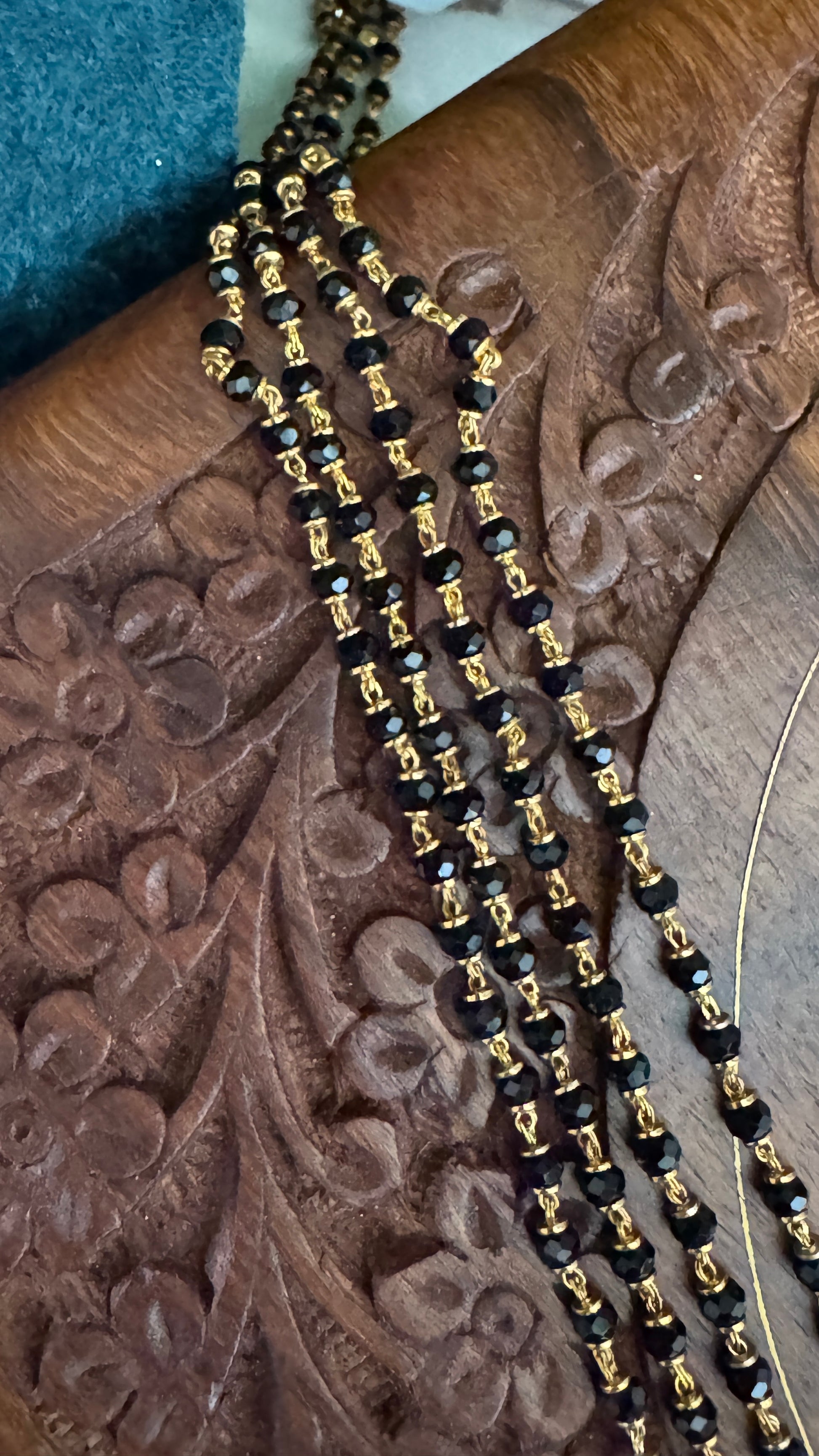 Embrace timeless elegance with this beautifully crafted Long Mangalsutra featuring a classic strand of black beads and a stunning Kundan Stoned pendant. The rich gold finish enhances its traditional charm while making it a versatile piece that can be worn daily or on special occasions.