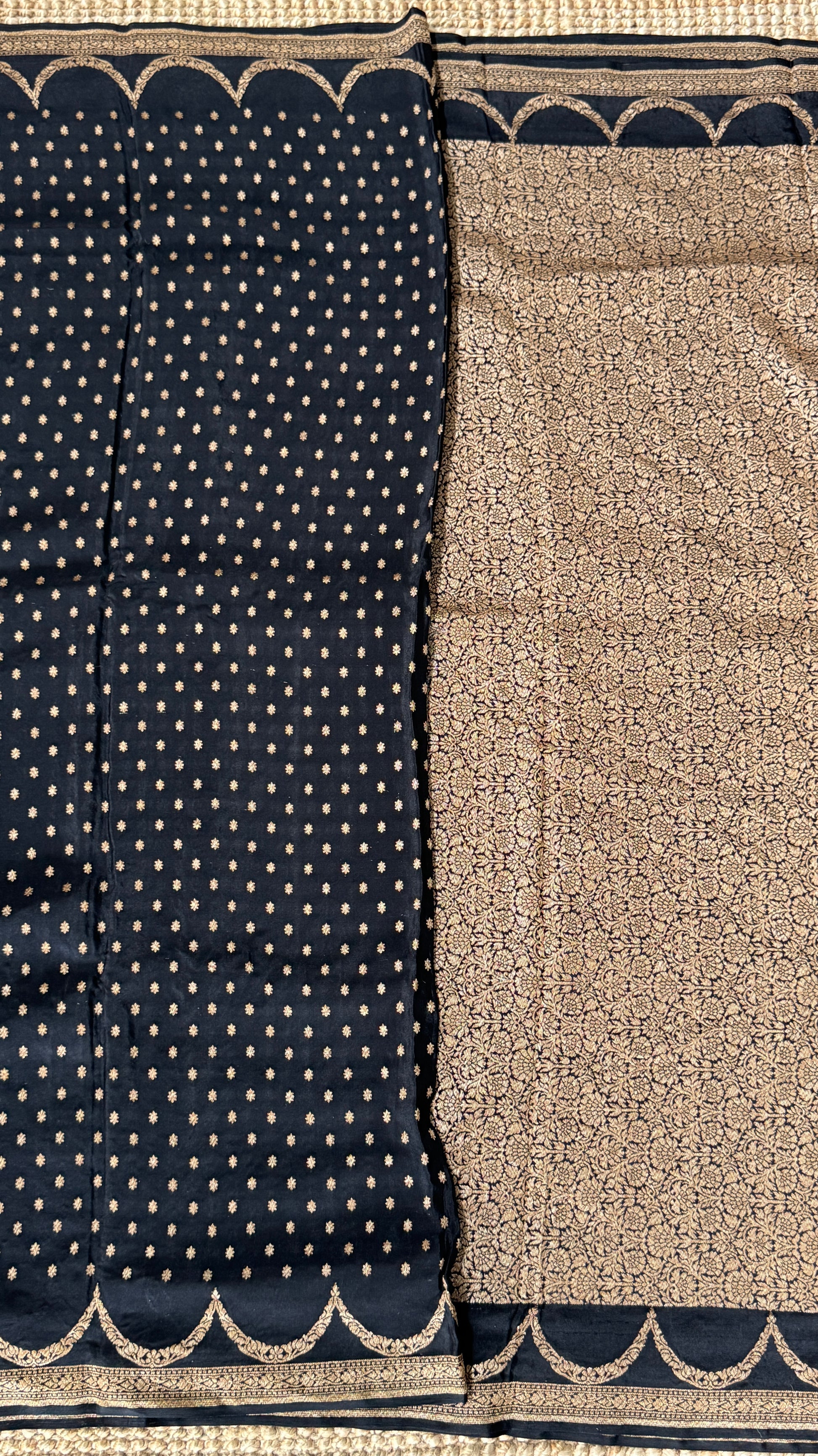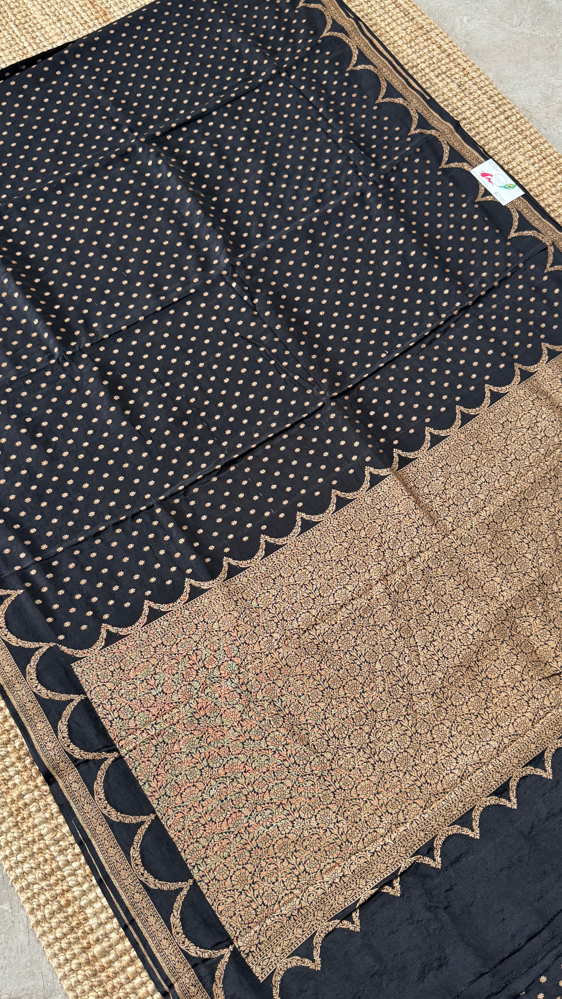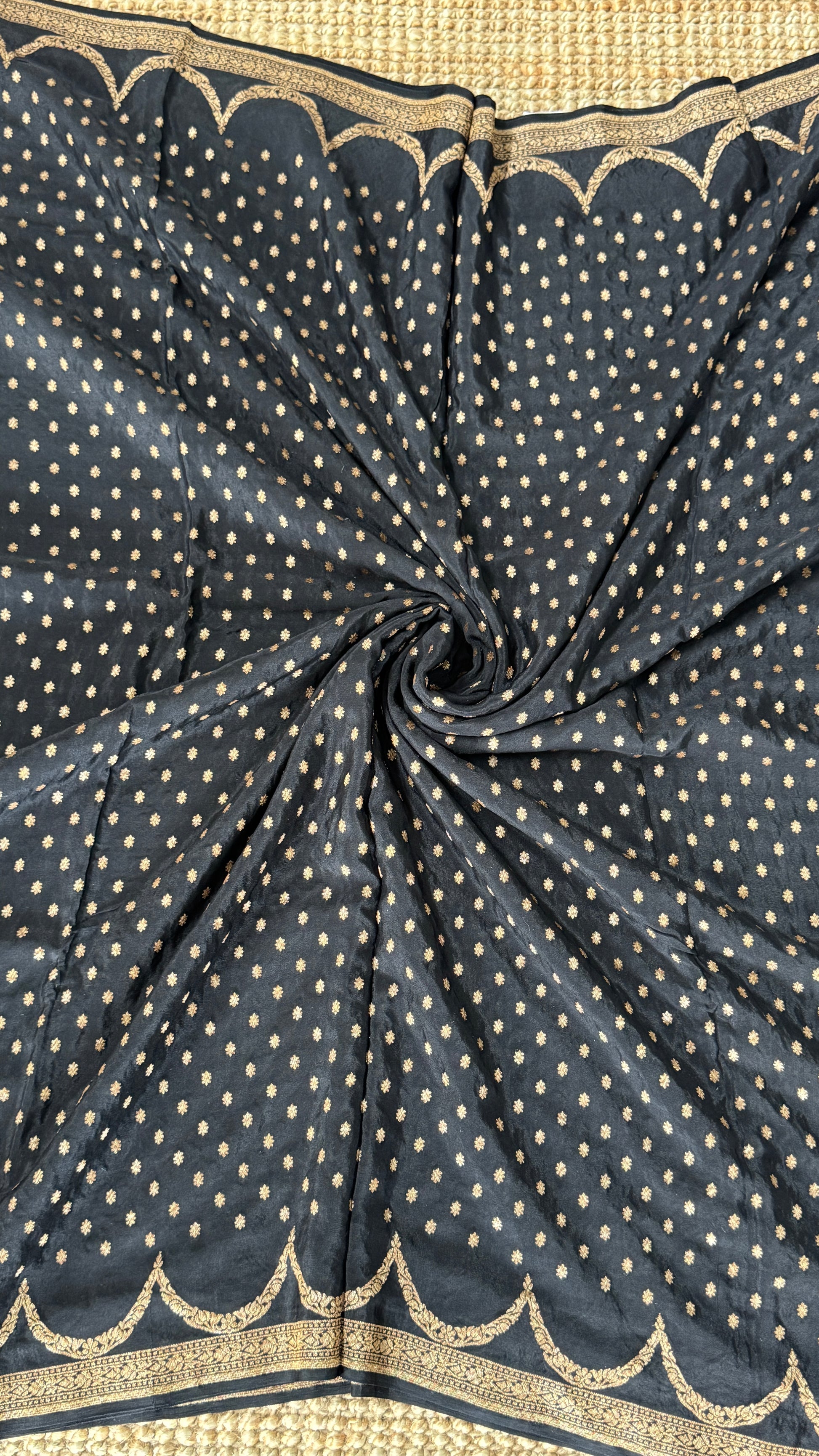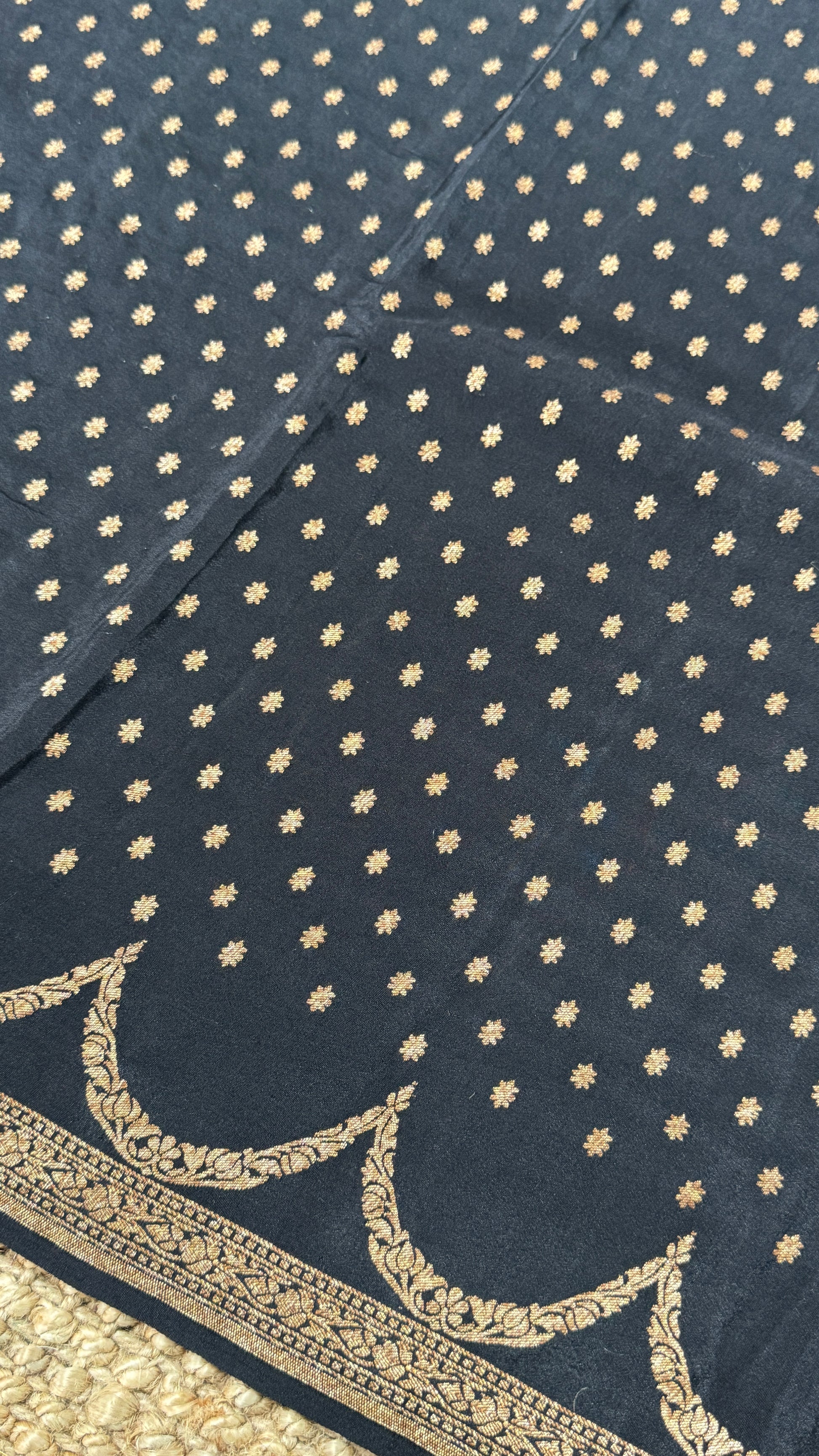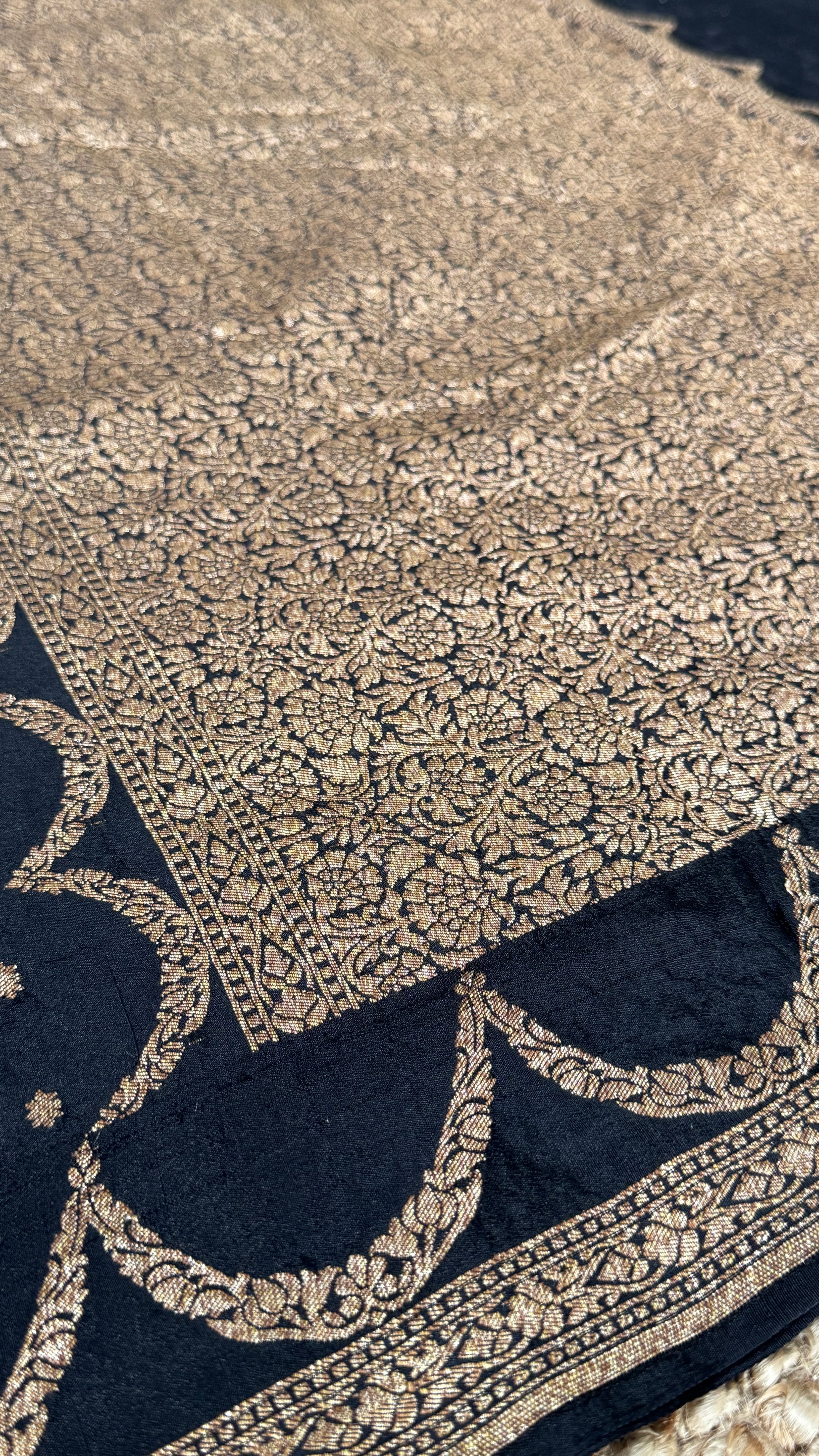 Pure Khaddi Georgette Crepe Silk Banarasi Saree – Black
