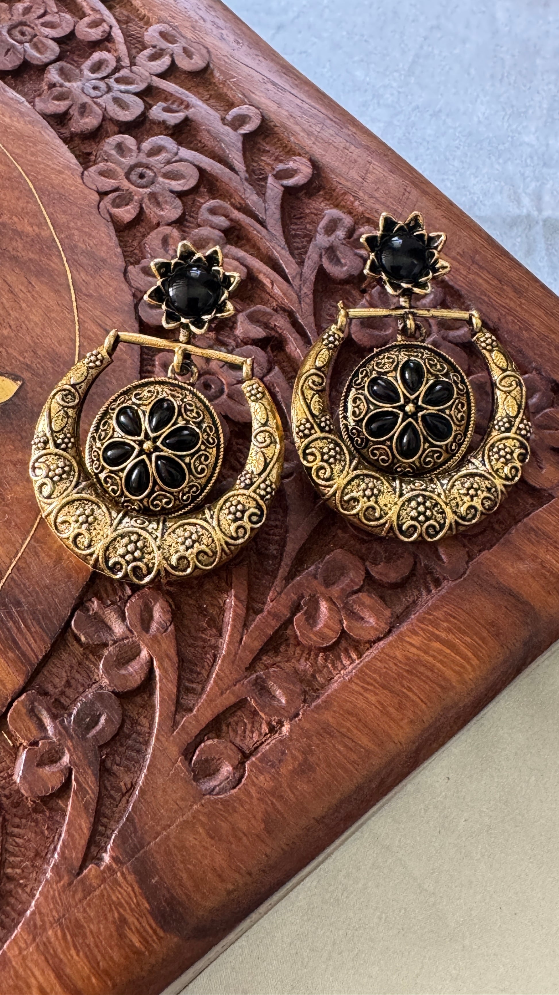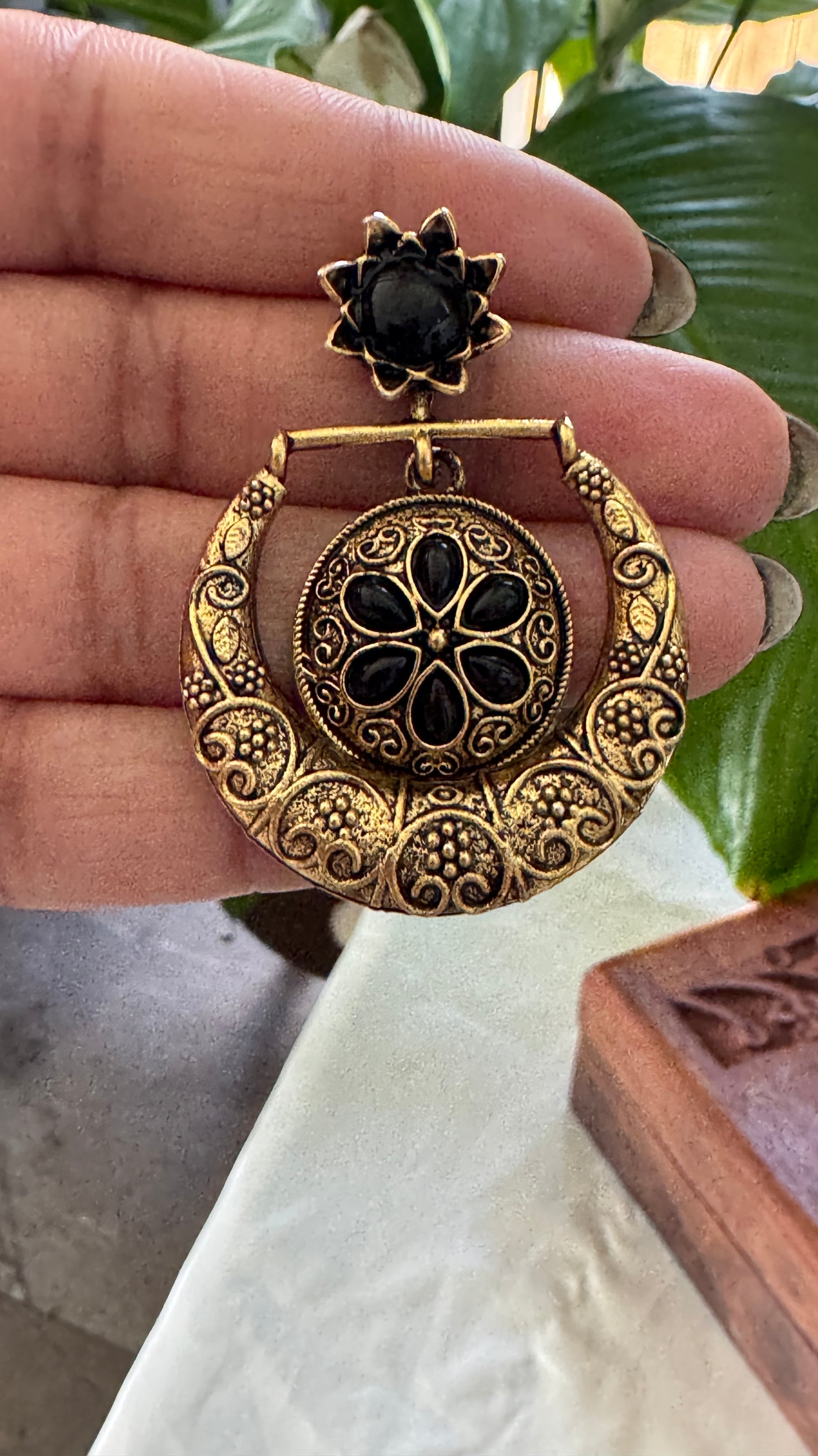 The intricate motif hanging makes this piece not just jewellery but a symbol of heritage and grace. Designed as a chandbhali styled earring, it pairs effortlessly with traditional outfits, adding charm and grace to any occasion.