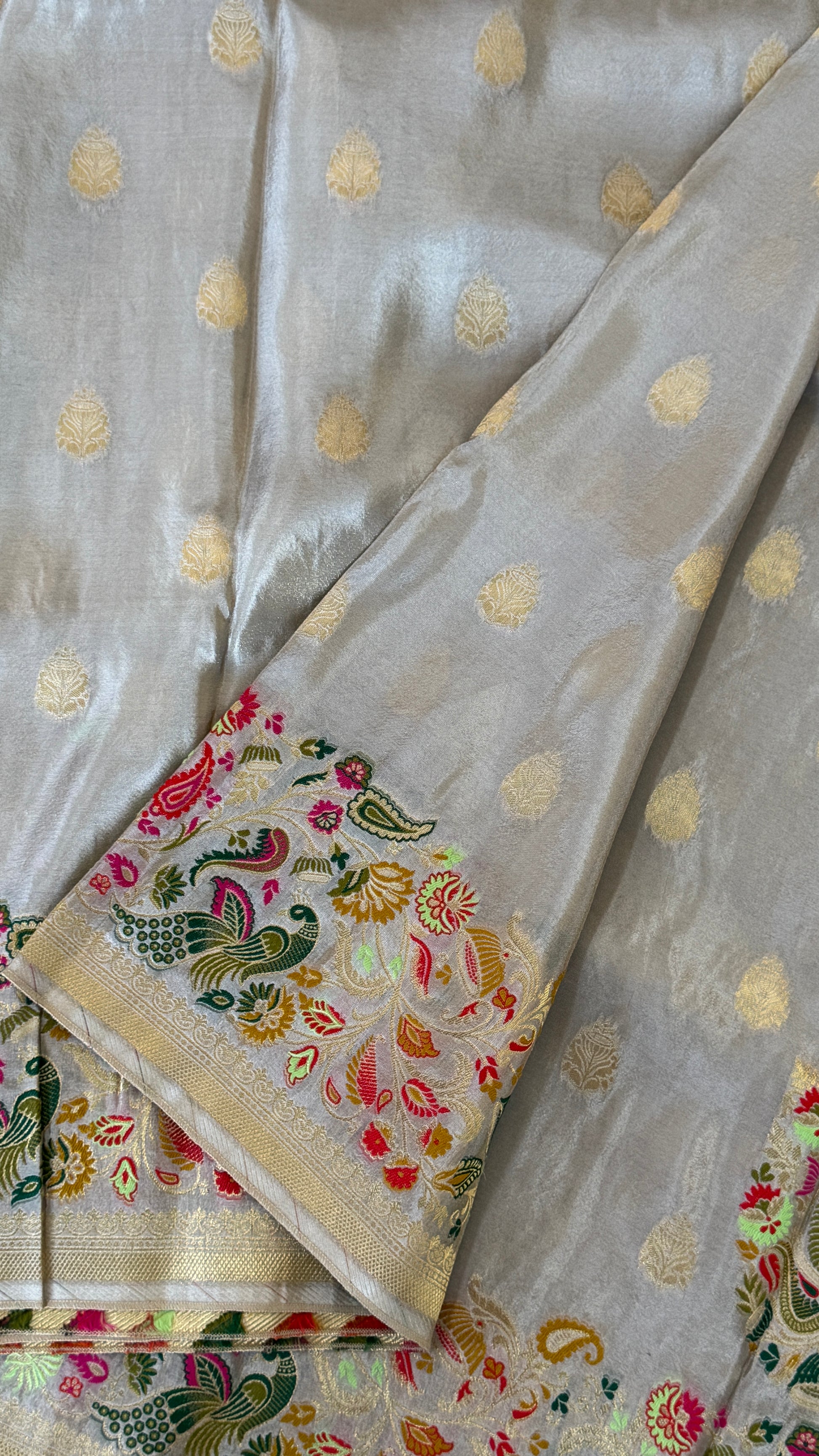 Soft Tissue Silk Saree – Elegant Light Grey with Intricate Weaving