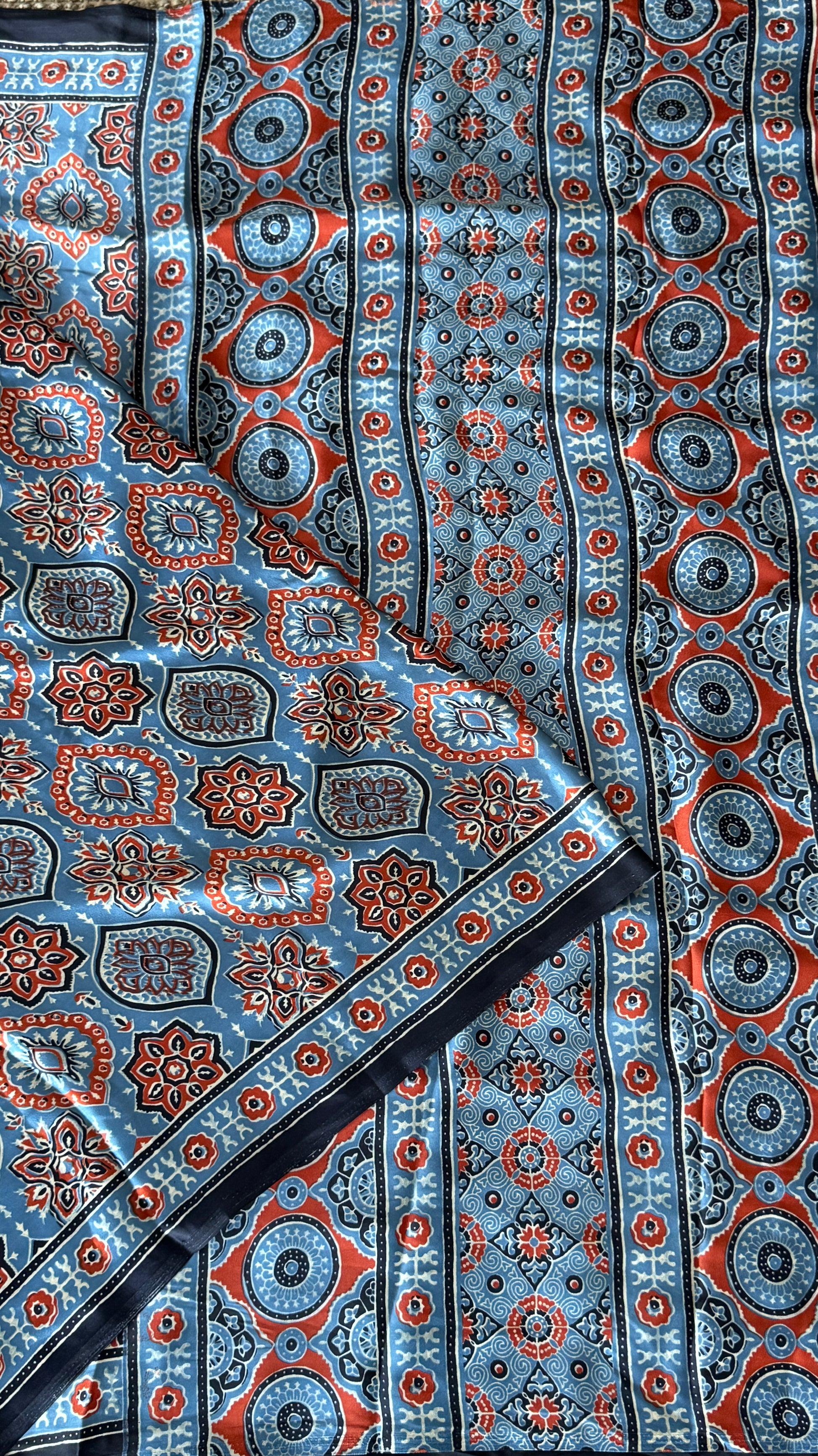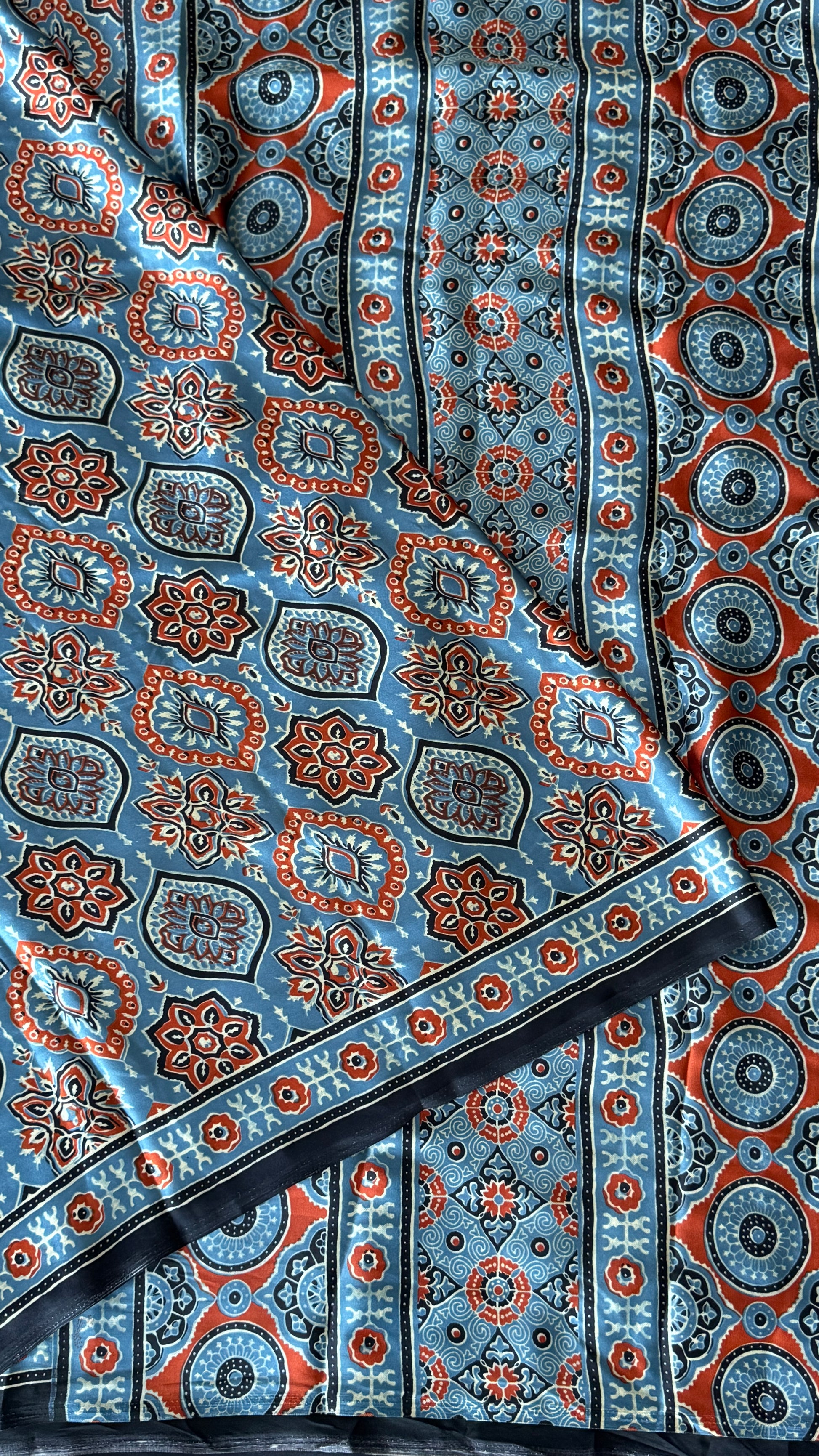 MODAL SILK SAREE WITH DIGITAL AJRAKH PRINTS - Denim Blue