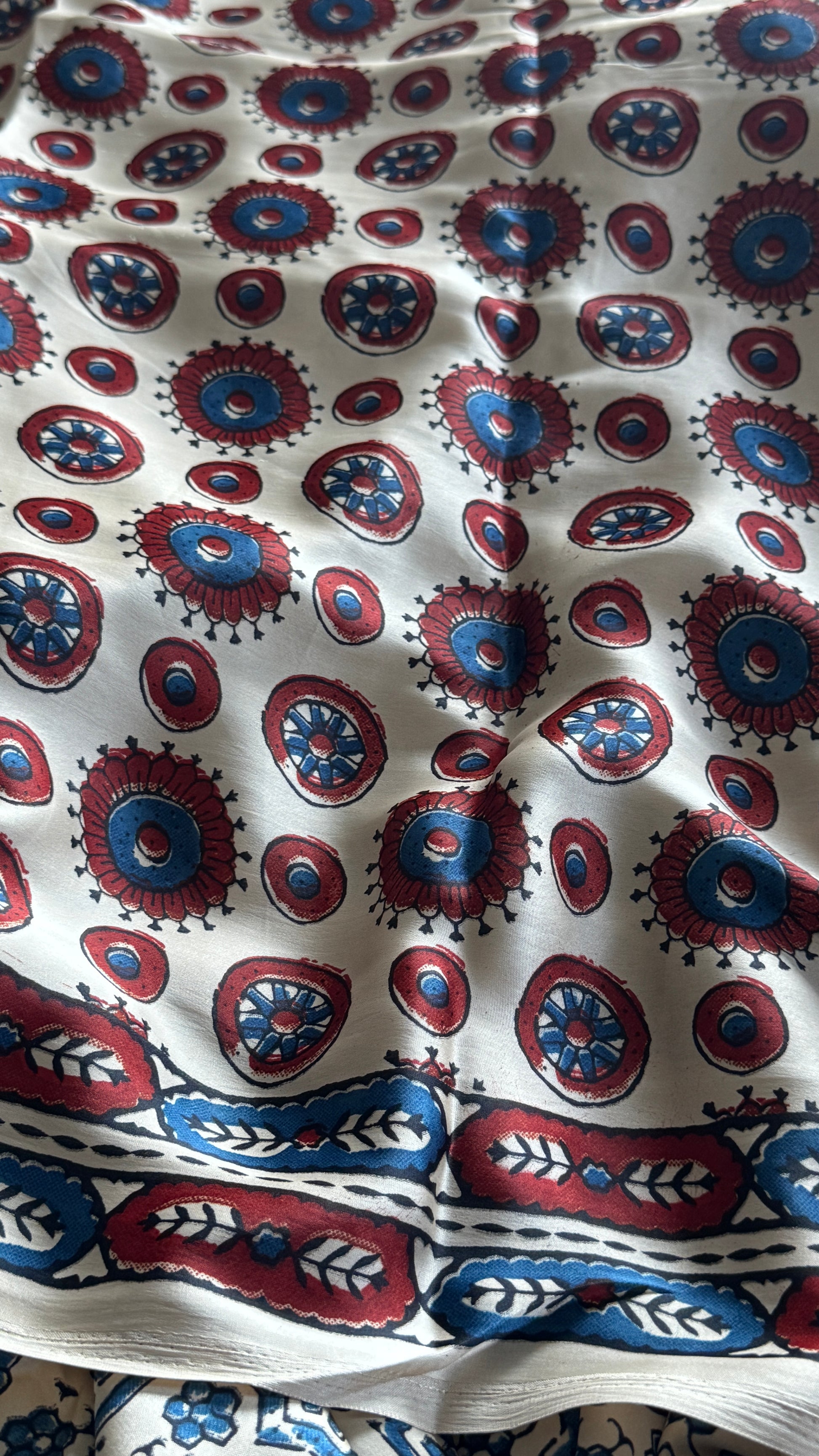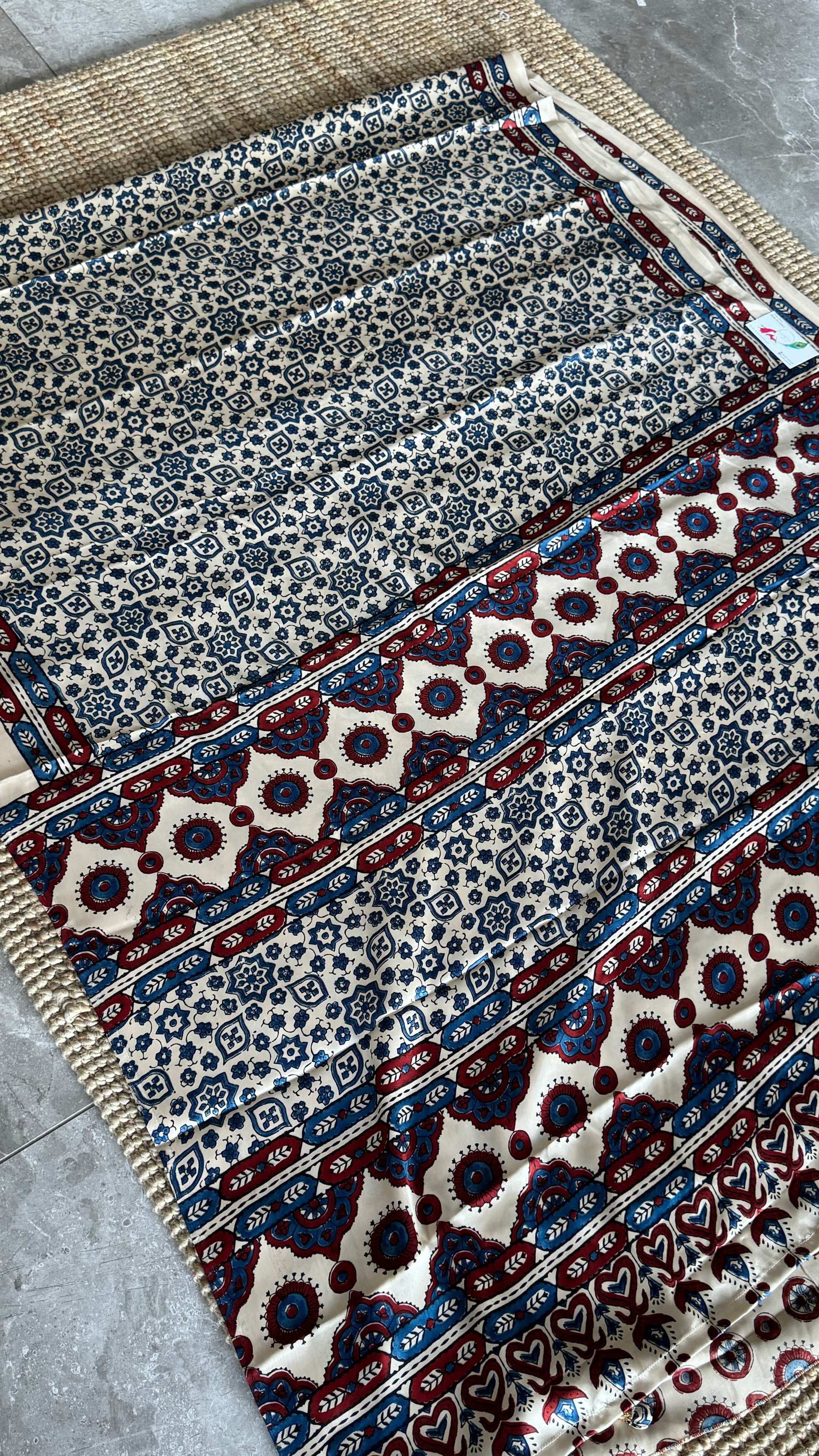 MODAL SILK SAREE WITH DIGITAL AJRAKH PRINTS - Half White
