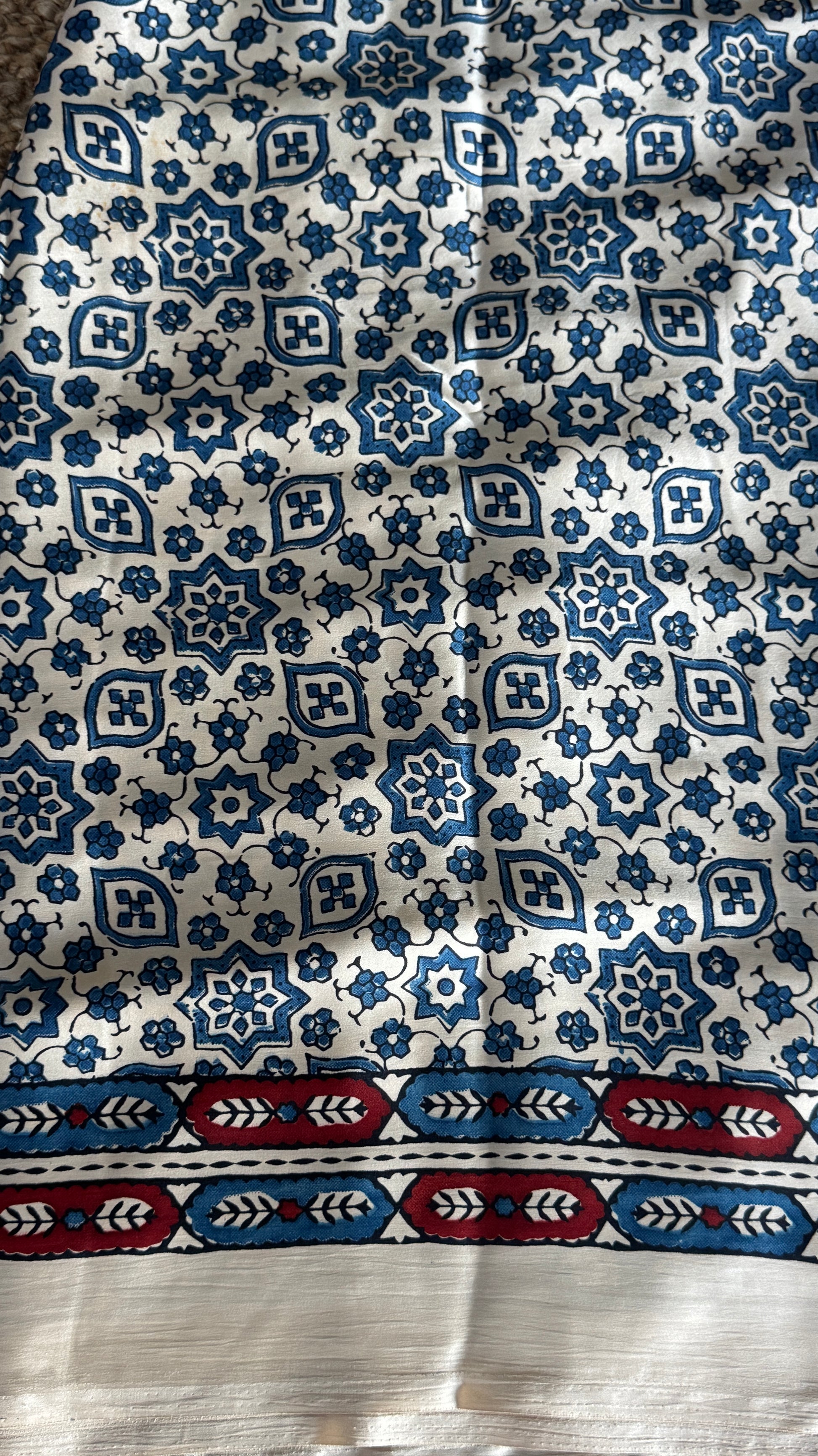 The smooth and lustrous modal silk fabric lends the saree a beautiful drape and soft texture, making it effortlessly graceful and comfortable to wear. The intricate Ajrakh motifs enhance its classic appeal, making it perfect for both festive and casual occasions.