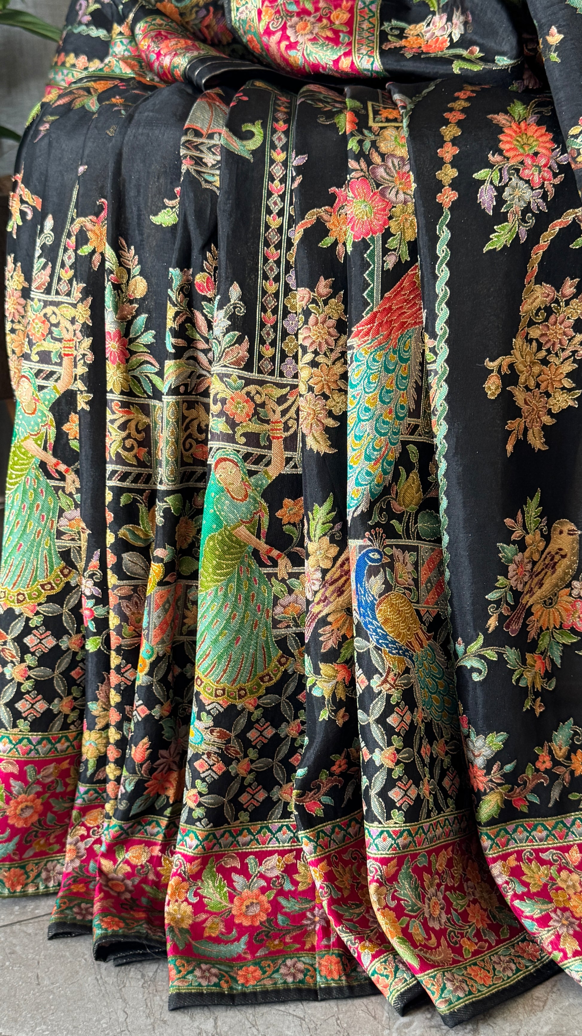 A Kashmiri Pashmina Banarasi Handwoven Storytelling Sarees - Black