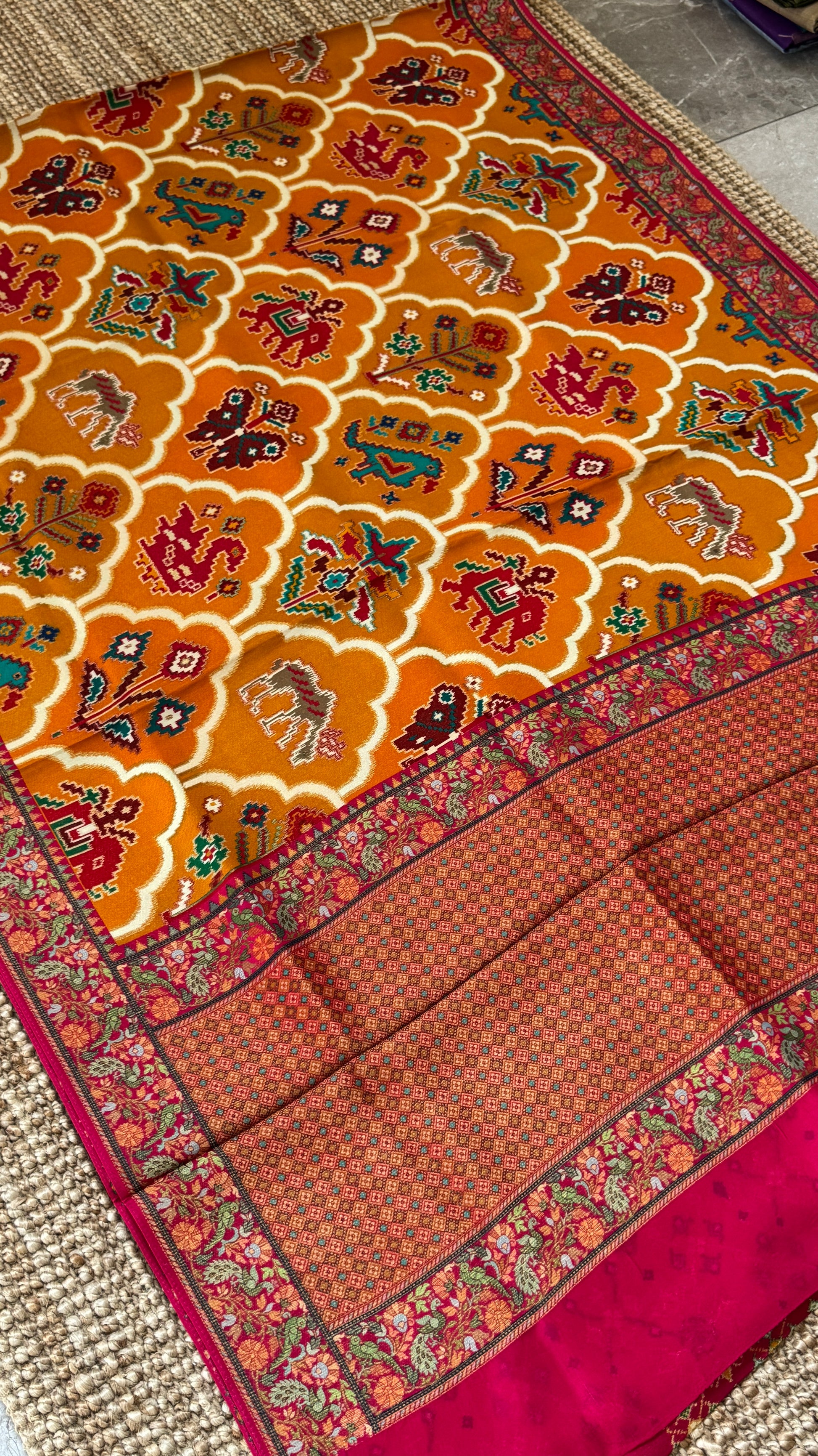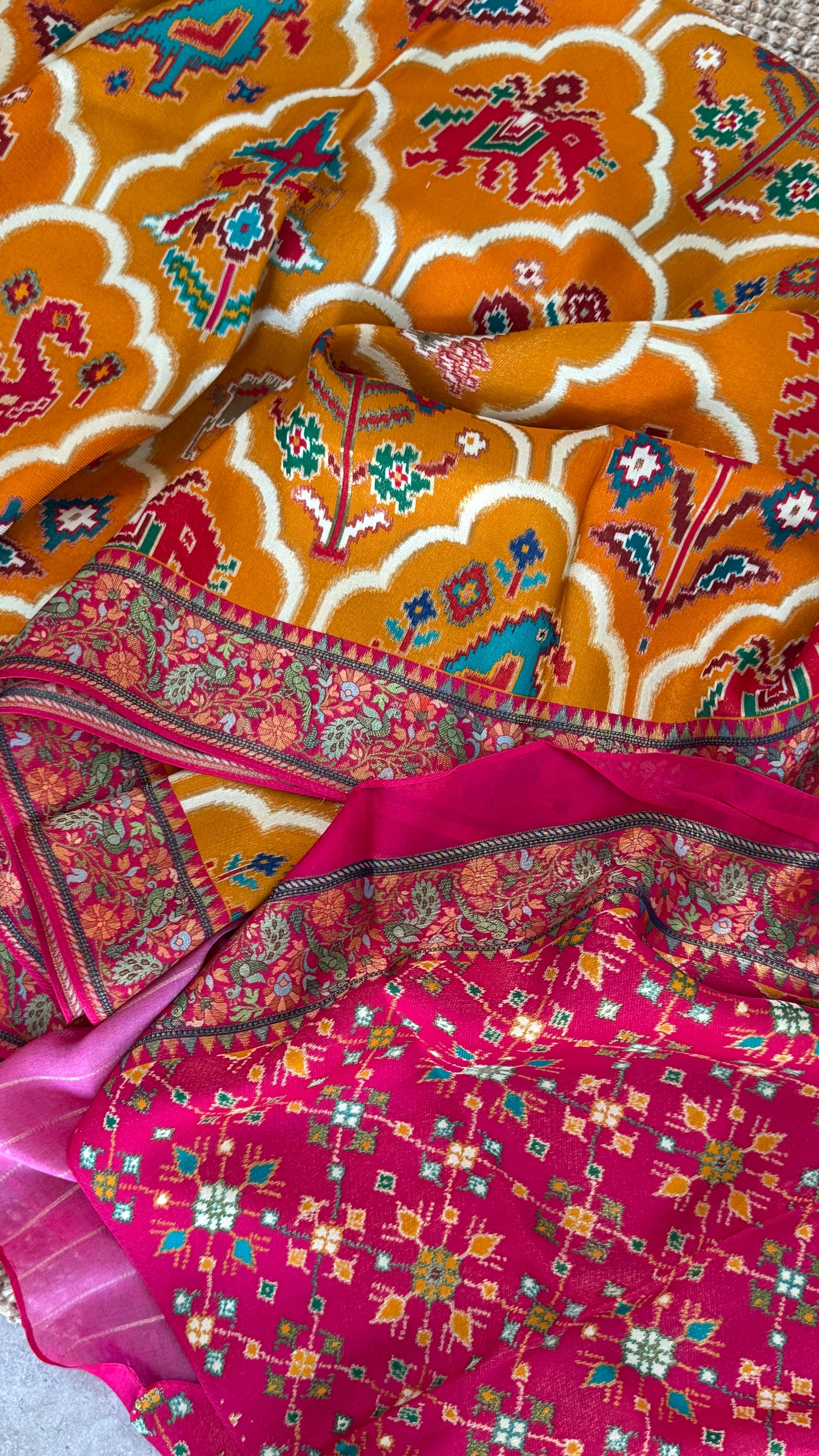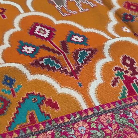 A Kashmiri Pashmina Banarasi Handwoven Sarees with Patola prints - Mustard