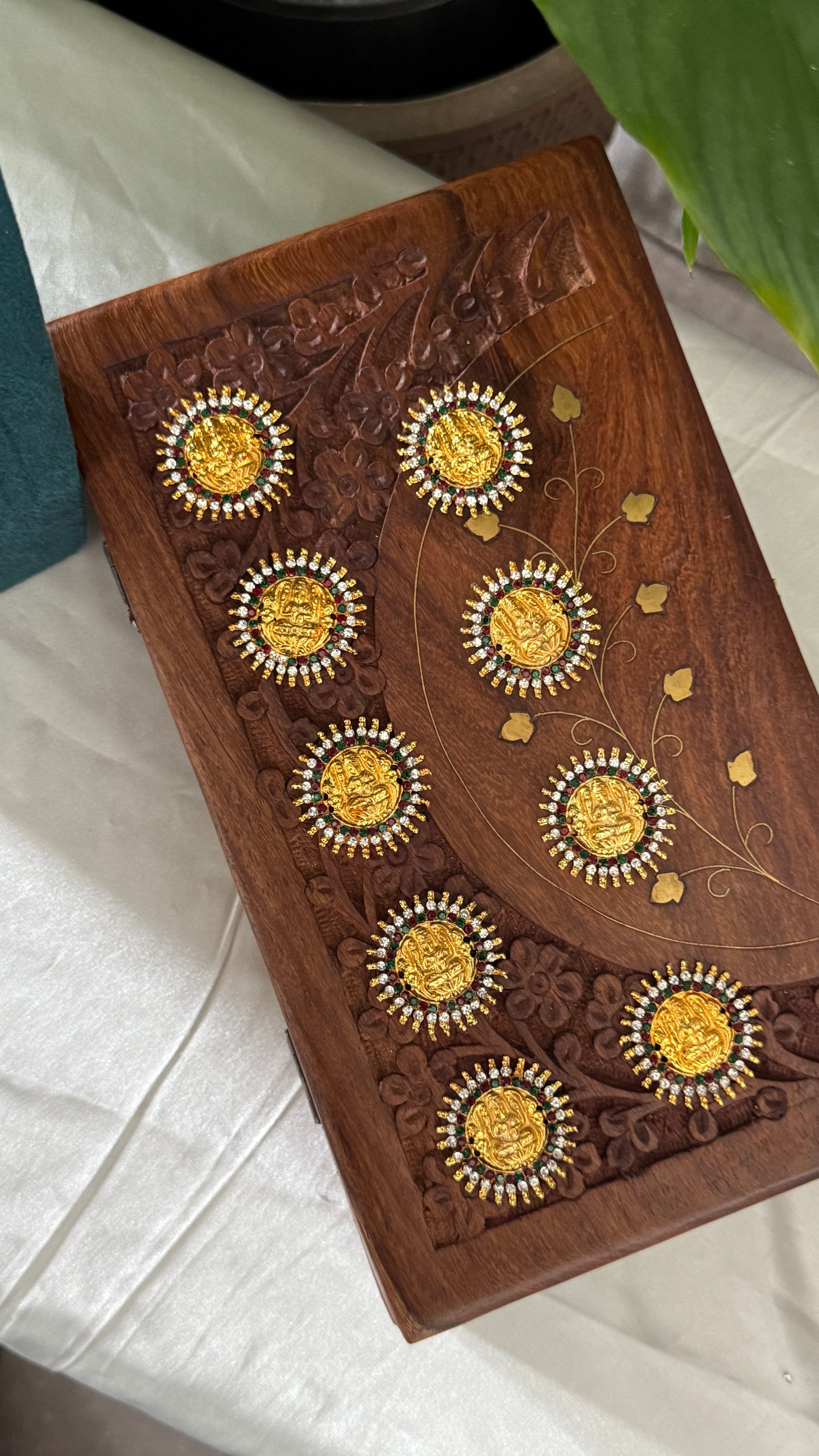 Enhance your bridal hairstyle with this traditional Indian Wedding Hair Brooch (Jadai Billai / Choti Decoration) featuring intricate Lakshmi designs symbolizing prosperity and divine blessings. Crafted with fine detailing, this timeless piece beautifully complements silk sarees, temple jewellery sets, and bridal attire.