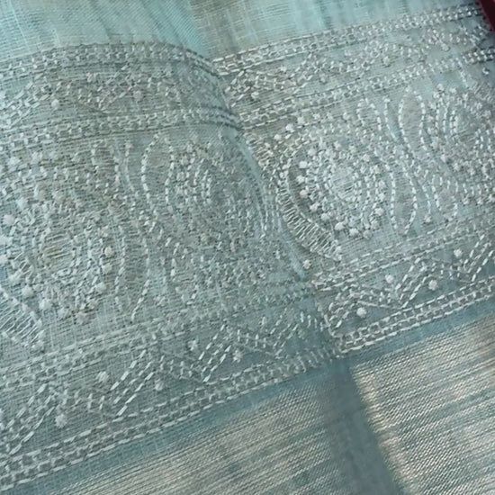 Embroidered Jute Linen Sarees – Effortless Elegance, Everyday Luxury - Blue