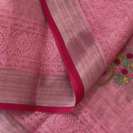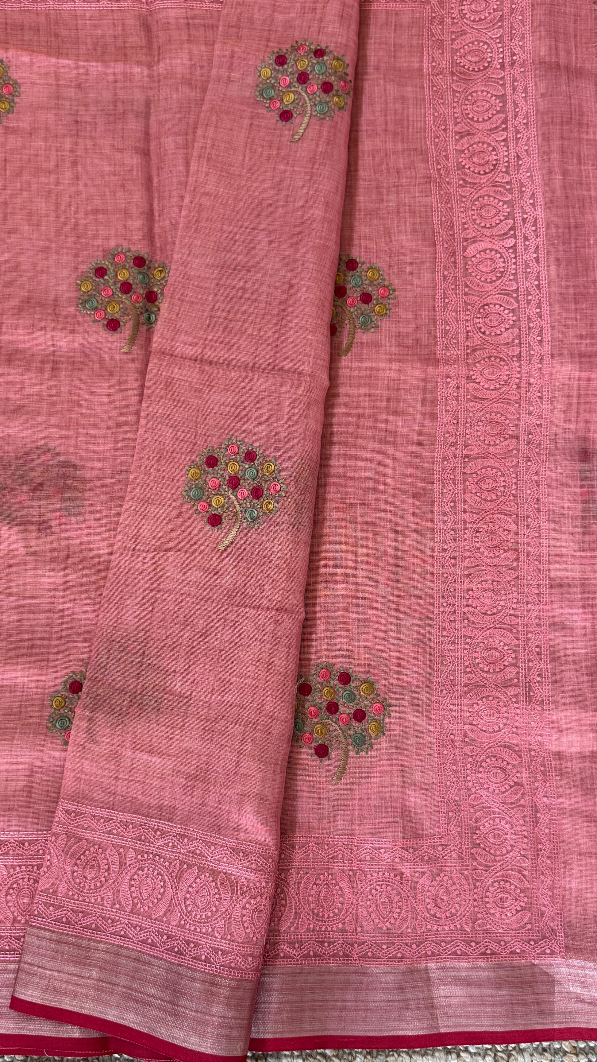 Embroidered Jute Linen Sarees – Effortless Elegance, Everyday Luxury - Peach