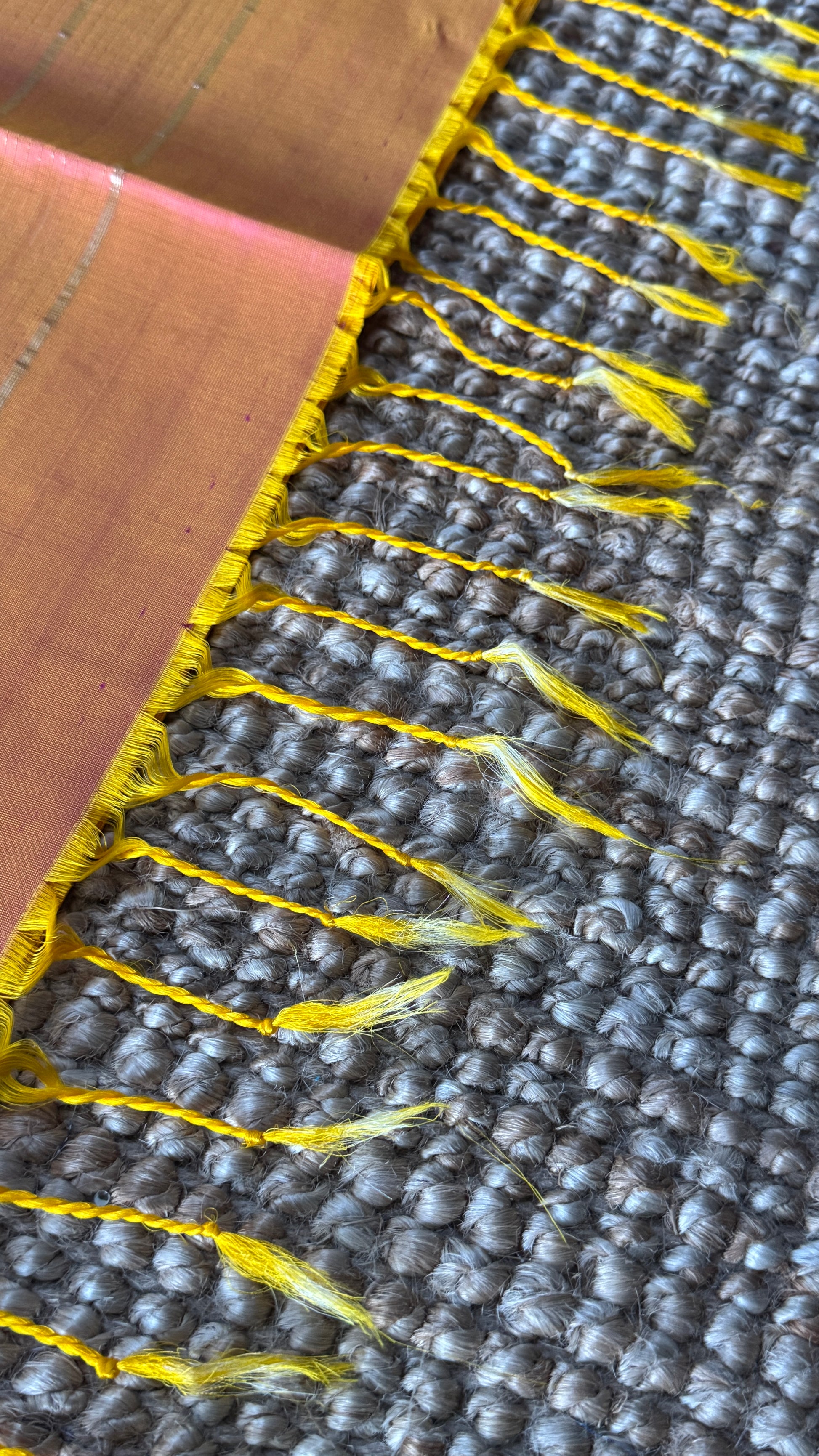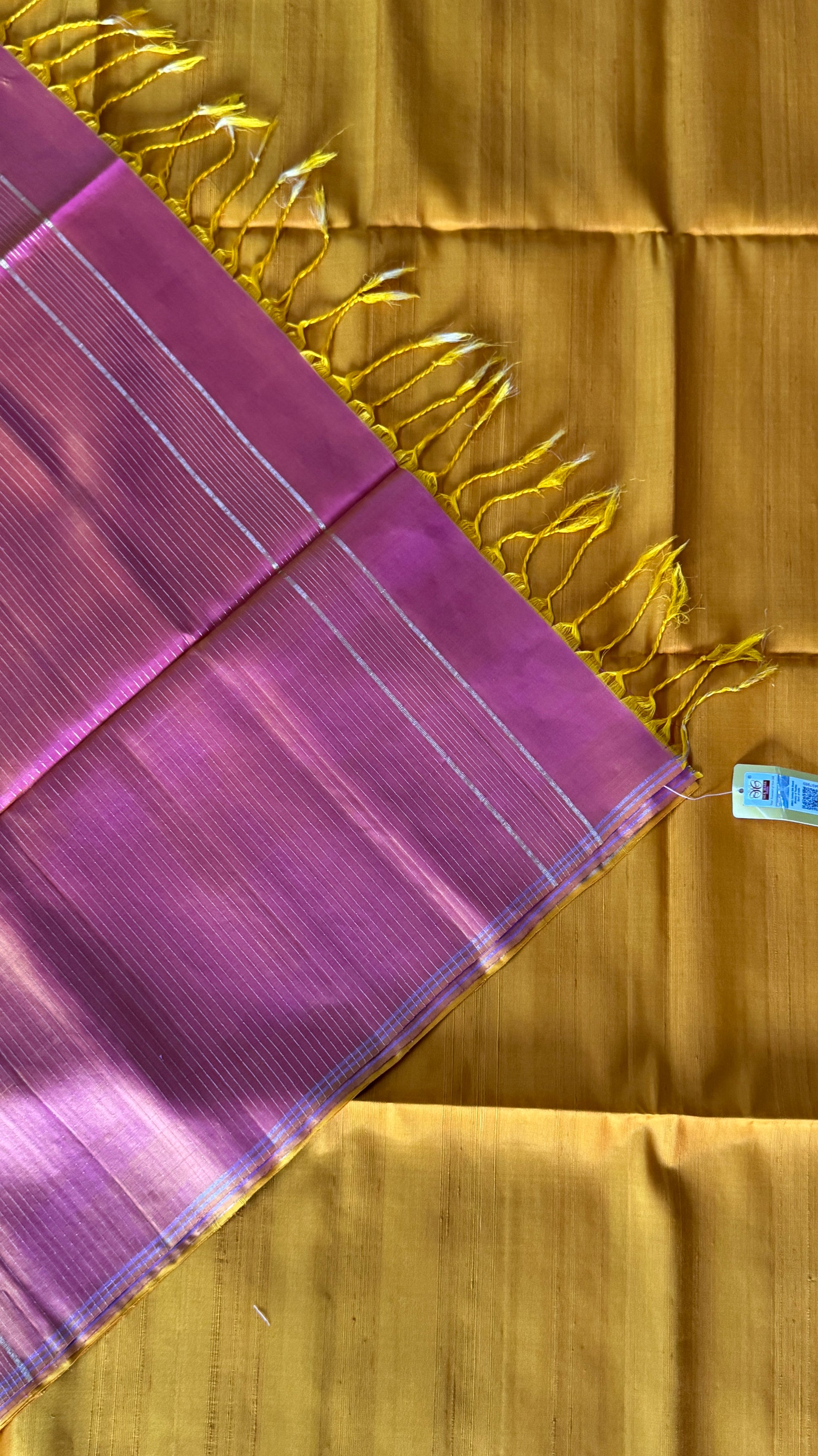 KANCHIVARAM PURE SOFT SILK HANDLOOM SAREE – MUSTARD YELLOW WITH BABY PINK PALLU