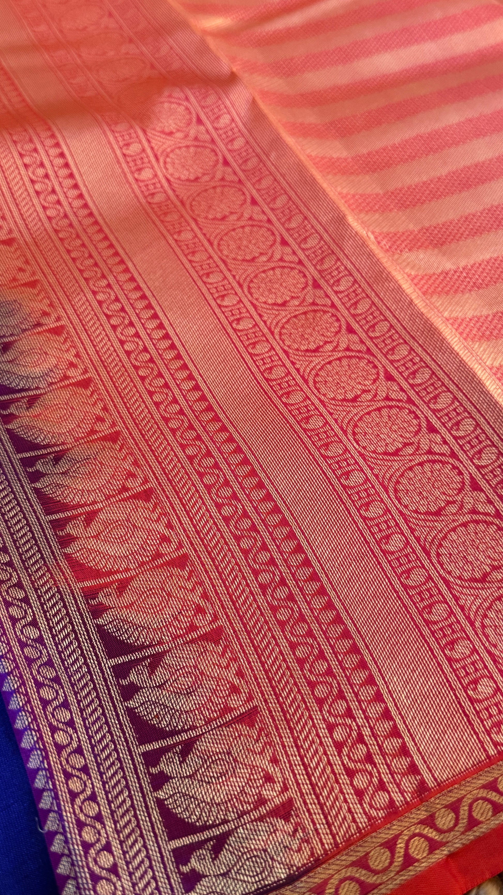 KANJIVARAM PURE SILK HANDLOOM SAREE in Royal Blue and Orange Elegance