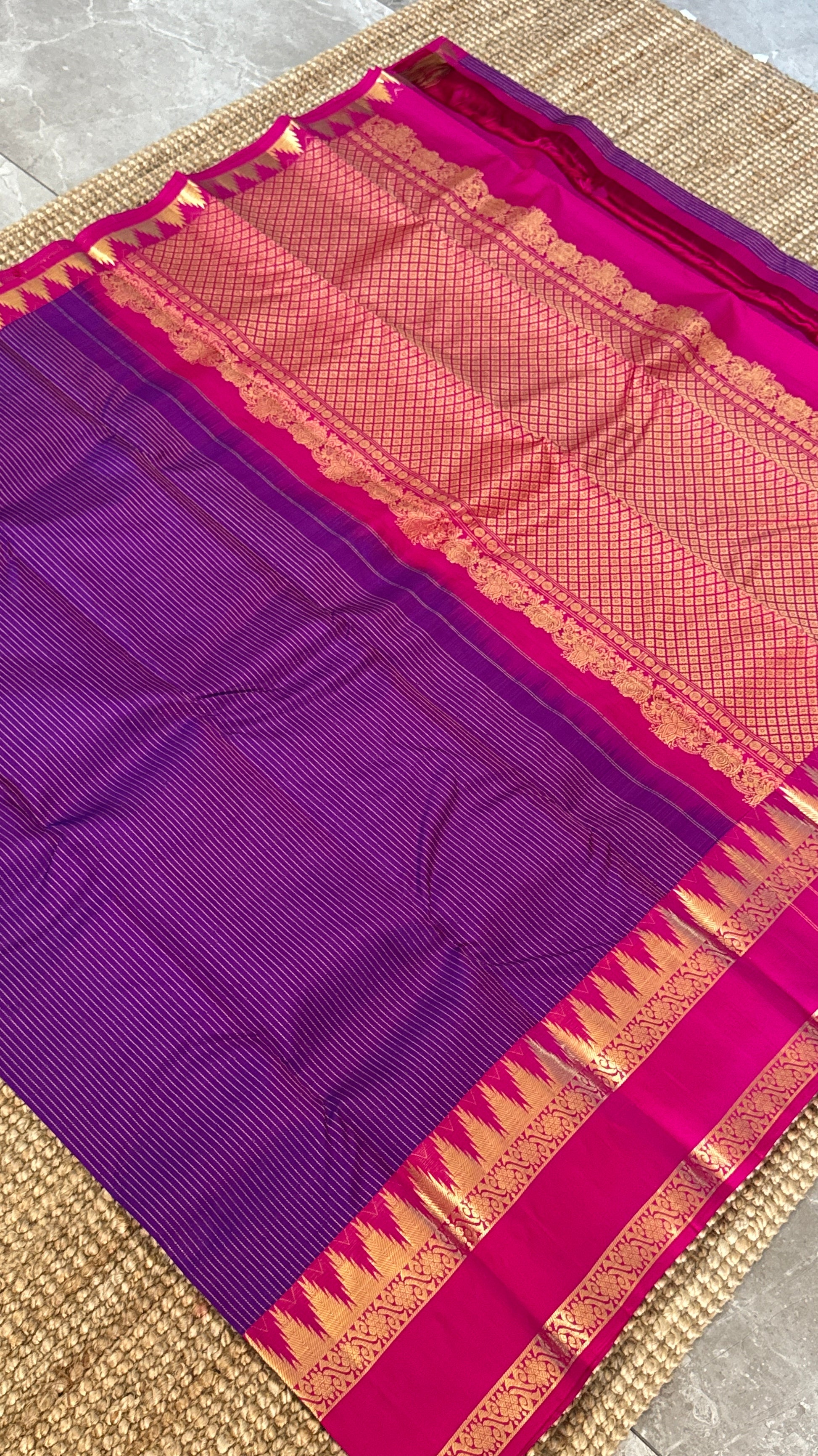Color: Purple body with contrasting Pink border and pallu
