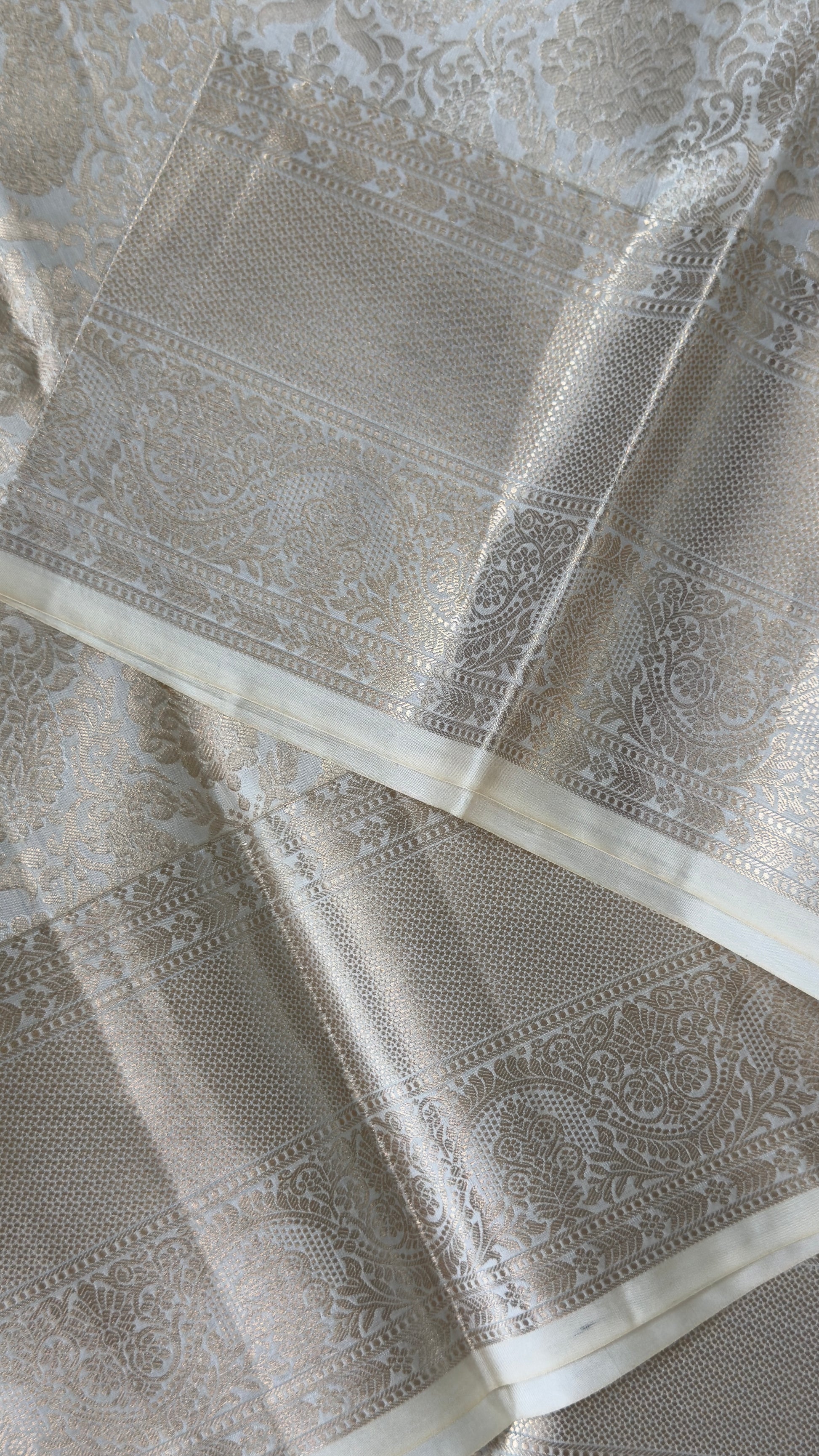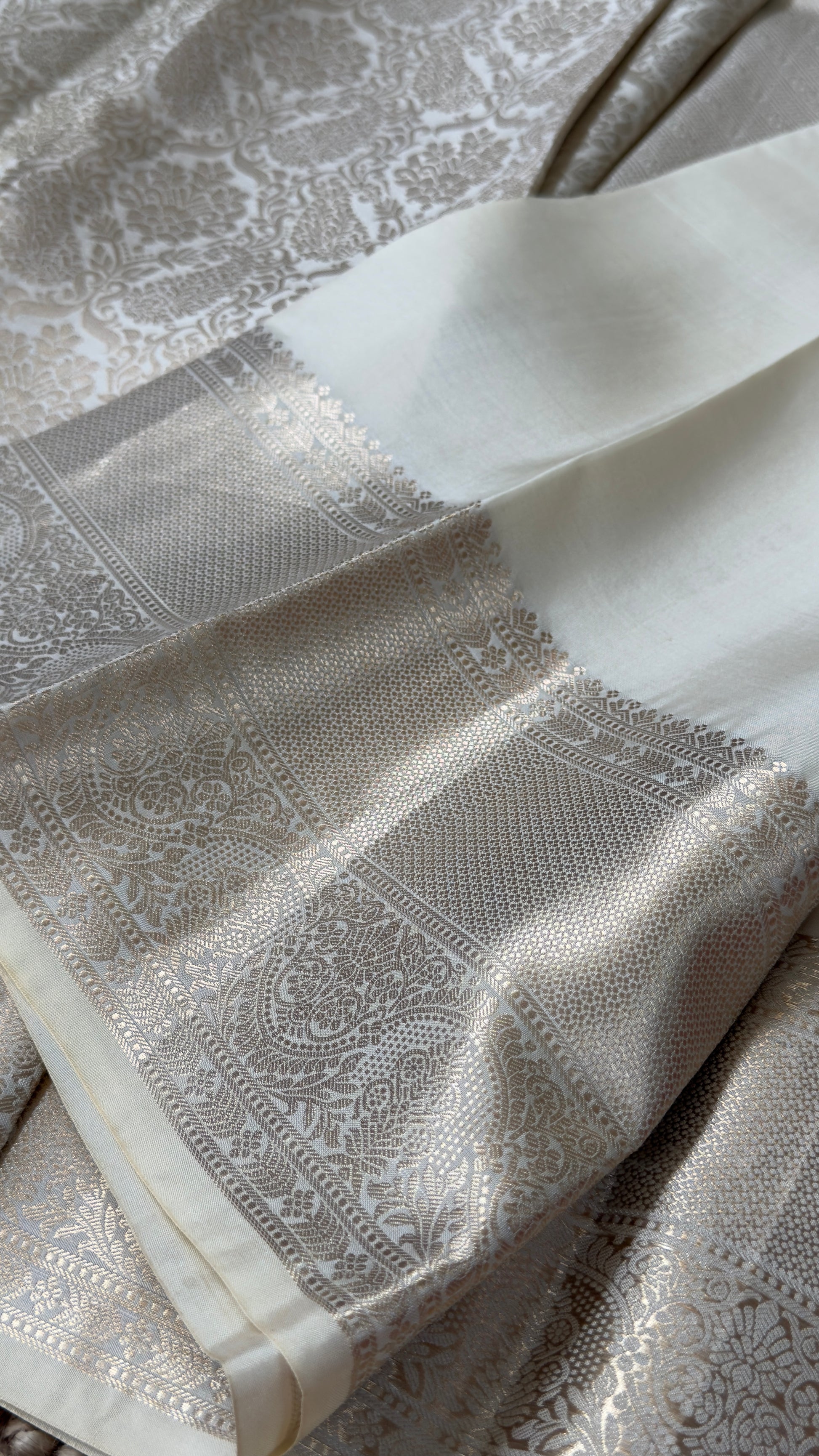 KANJIVARAM PURE SILK SAREE β Fully Brocade Saree in Half White