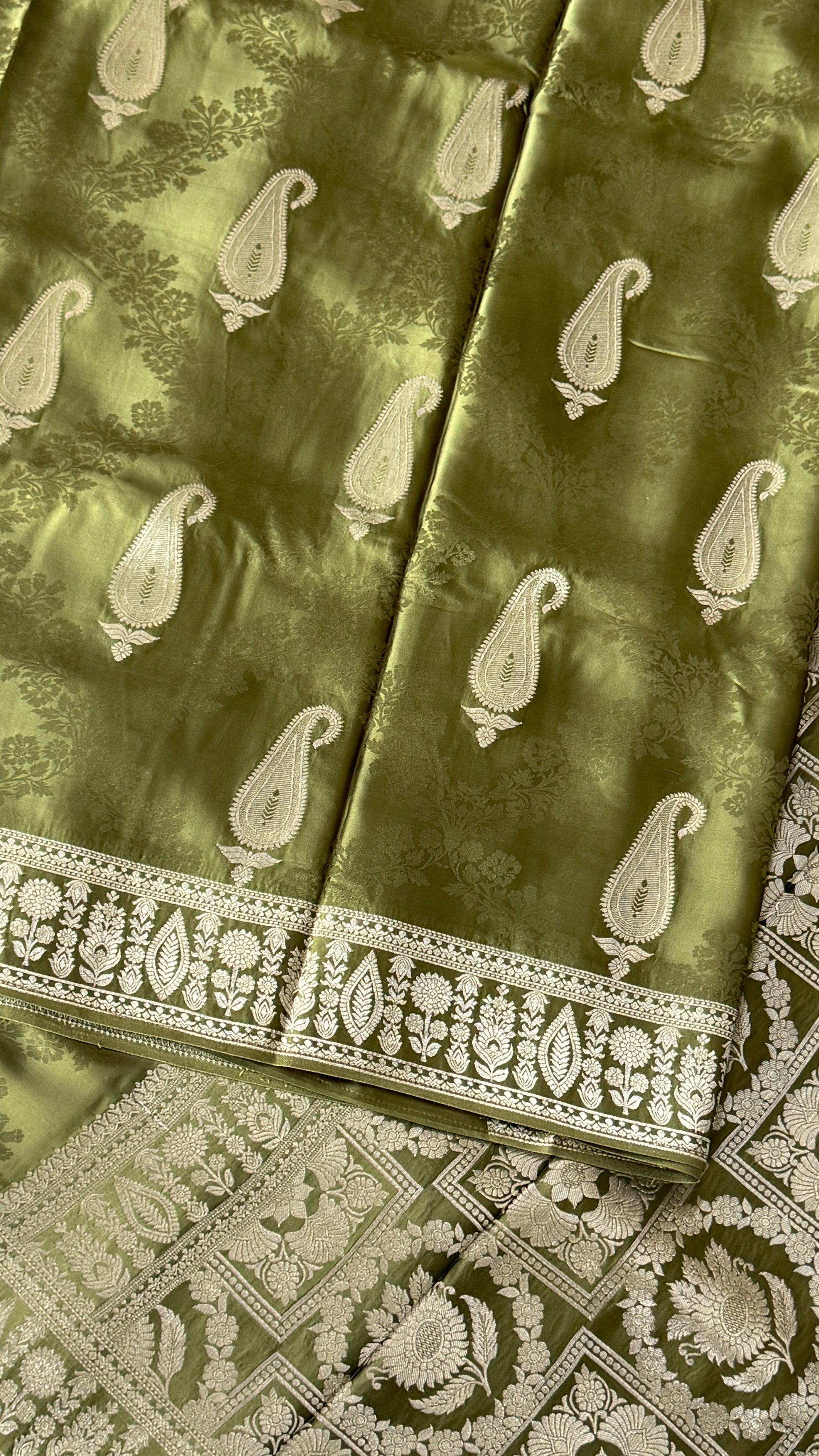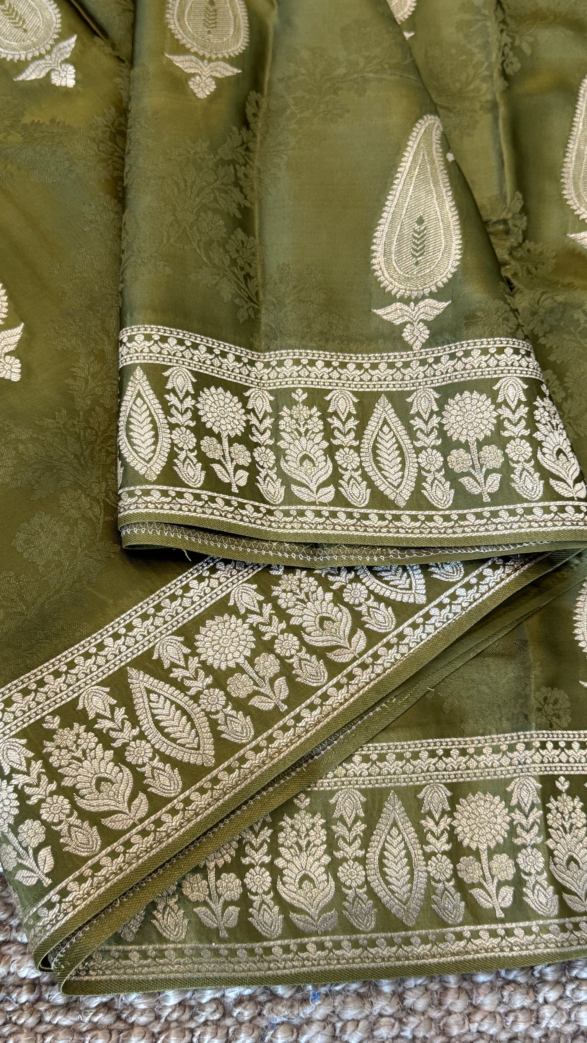 Mashru Silk Banarasi Saree – Kanchi Australia’s Exclusive – Olive Green