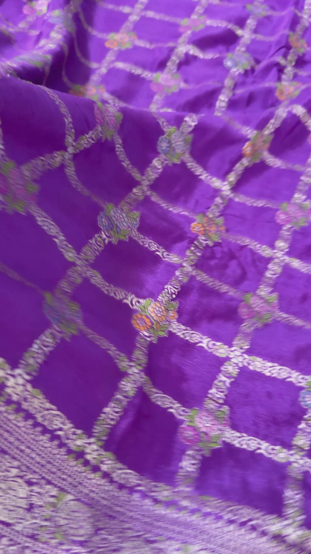 • Design: Floral grid pattern body with rich Banarasi motifs and traditional border
