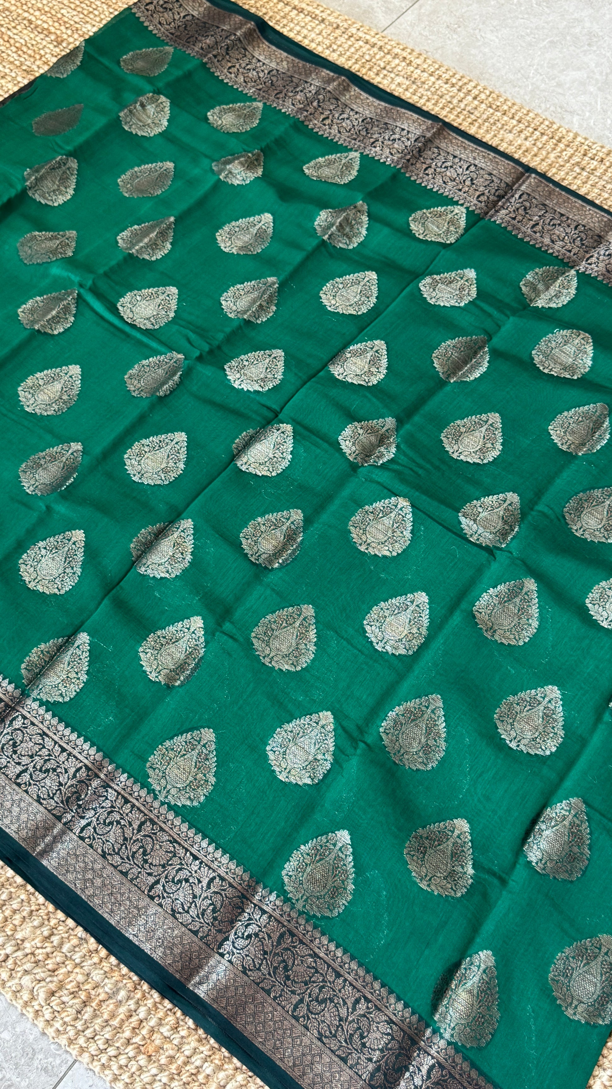 Pure Chanderi Cotton Saree, exquisitely woven to reflect the richness of Indian handloom traditions. Chanderi cotton is renowned for its lightweight texture, sheer finesse, and subtle sheen, making it a perfect choice for both festive occasions and sophisticated day wear.