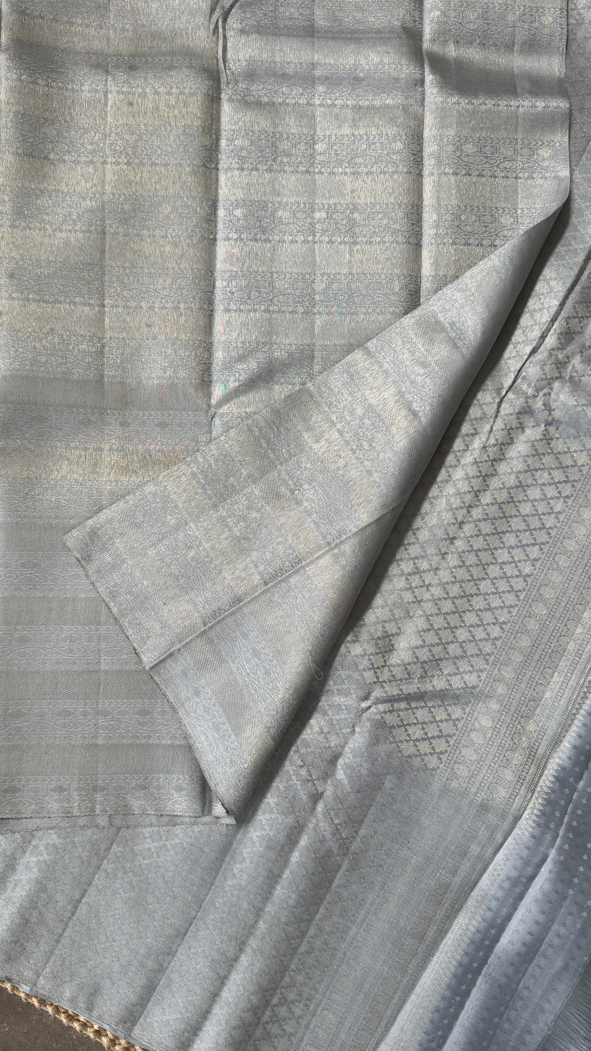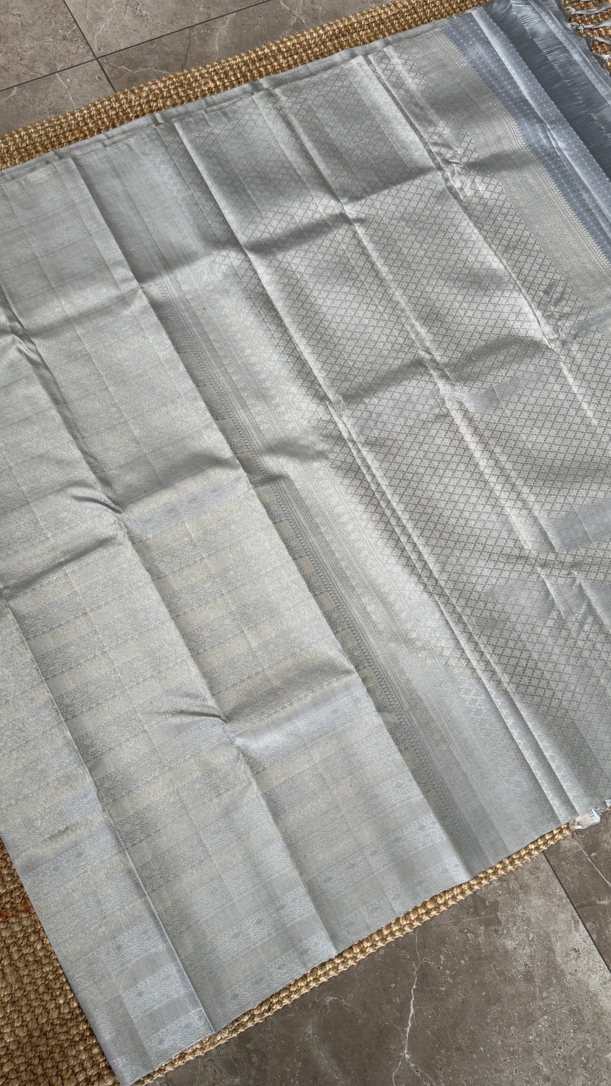 Pure Kanchivaram Silk Saree – Silver Grey Elegance Woven in Tradition