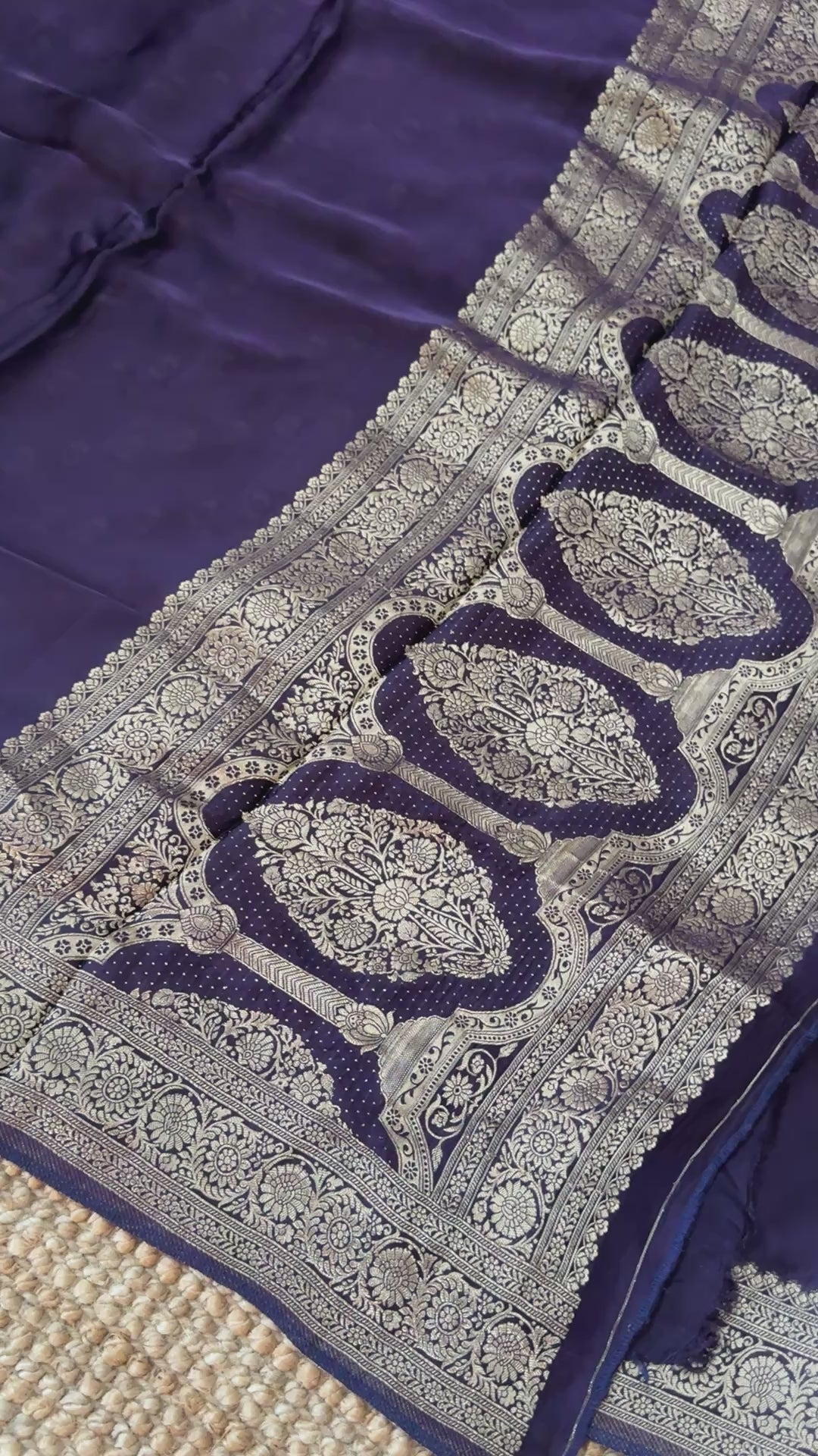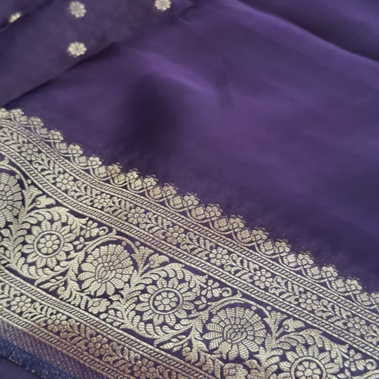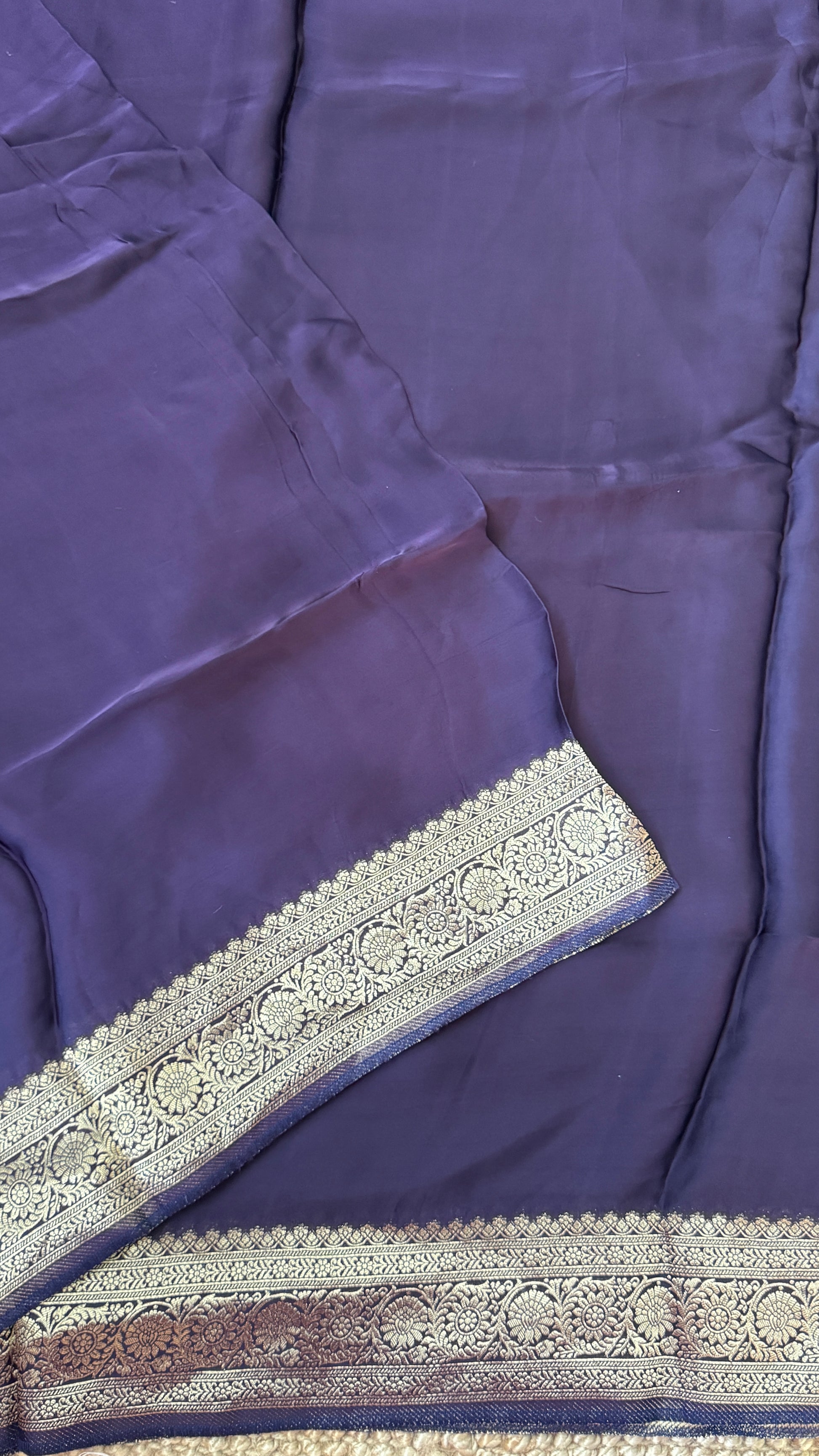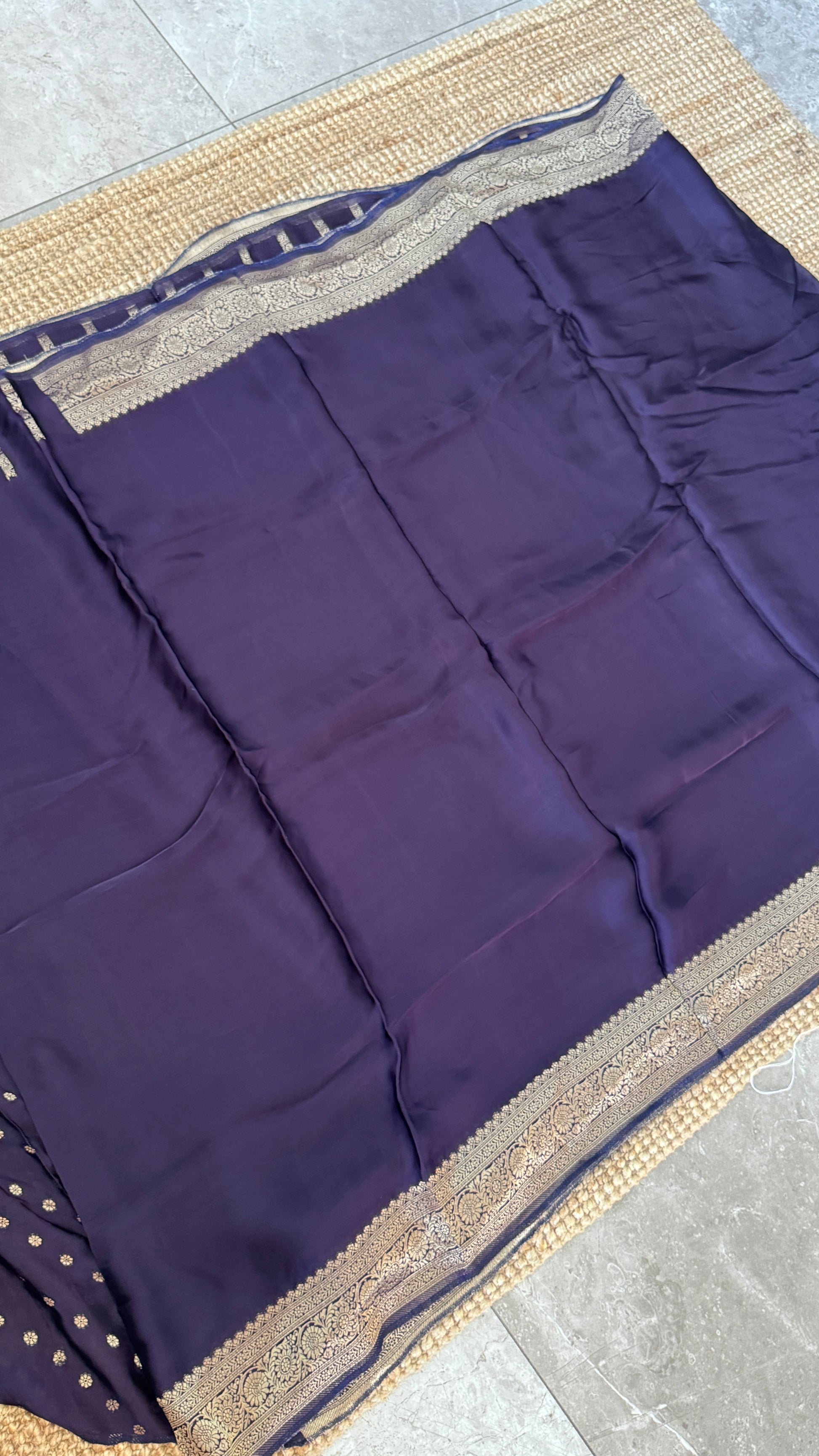 ✨ Pure Satin Silk Banarasi Saree in Deep Violet Shade with Plain charm✨