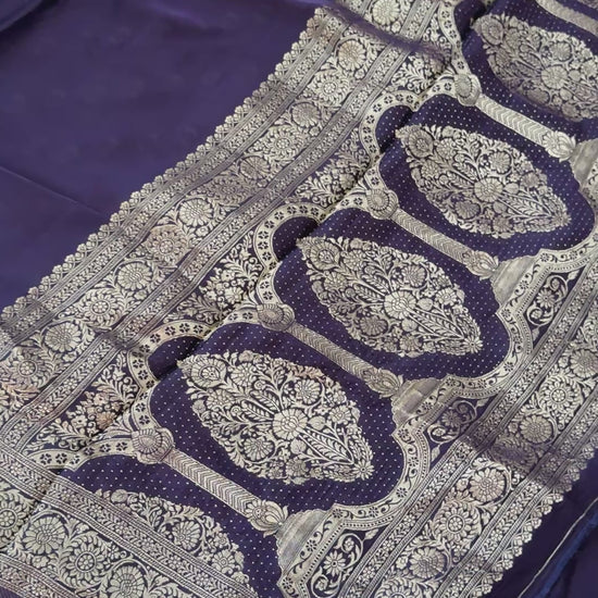 Pure Satin Silk Banarasi Saree in Deep Violet Shade