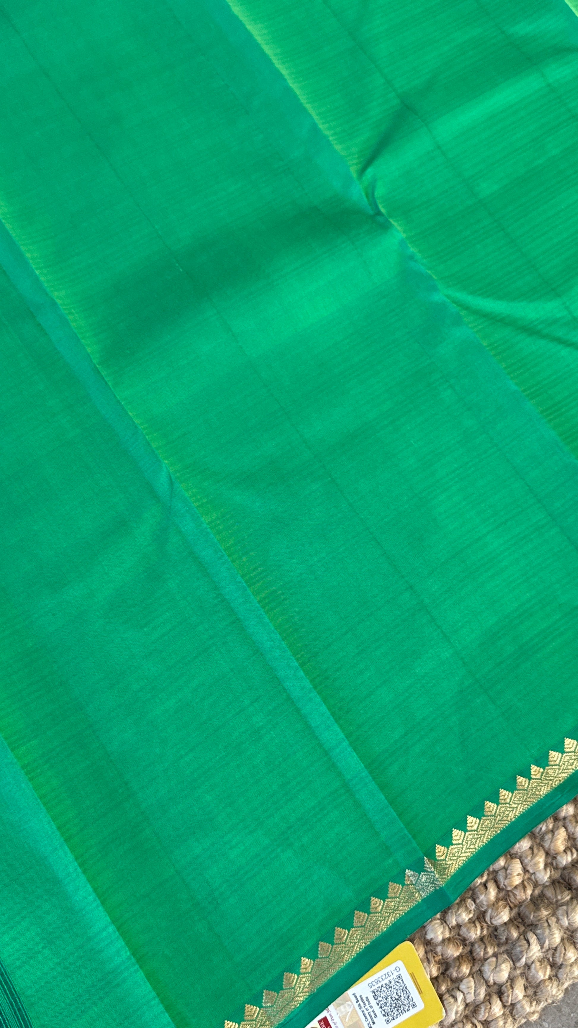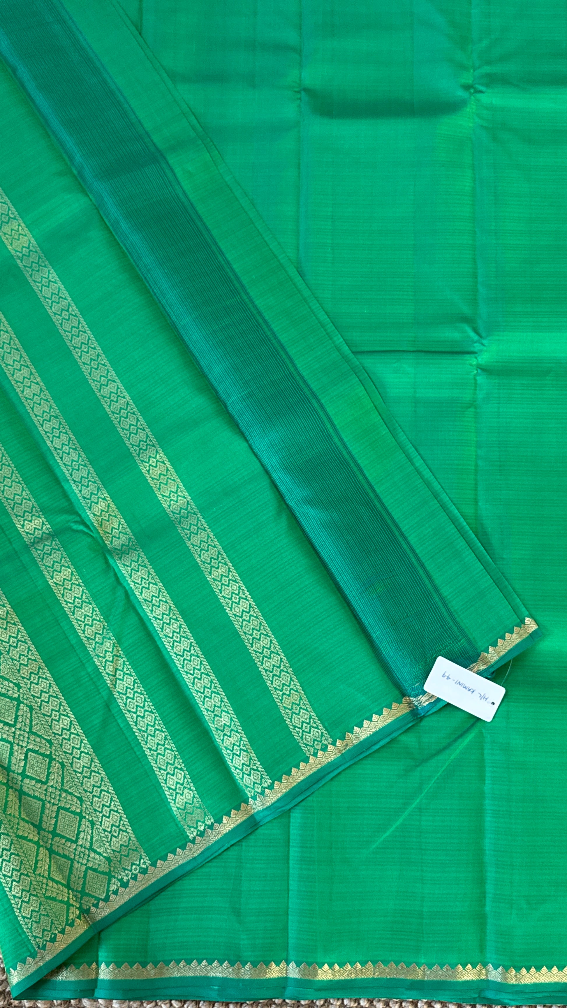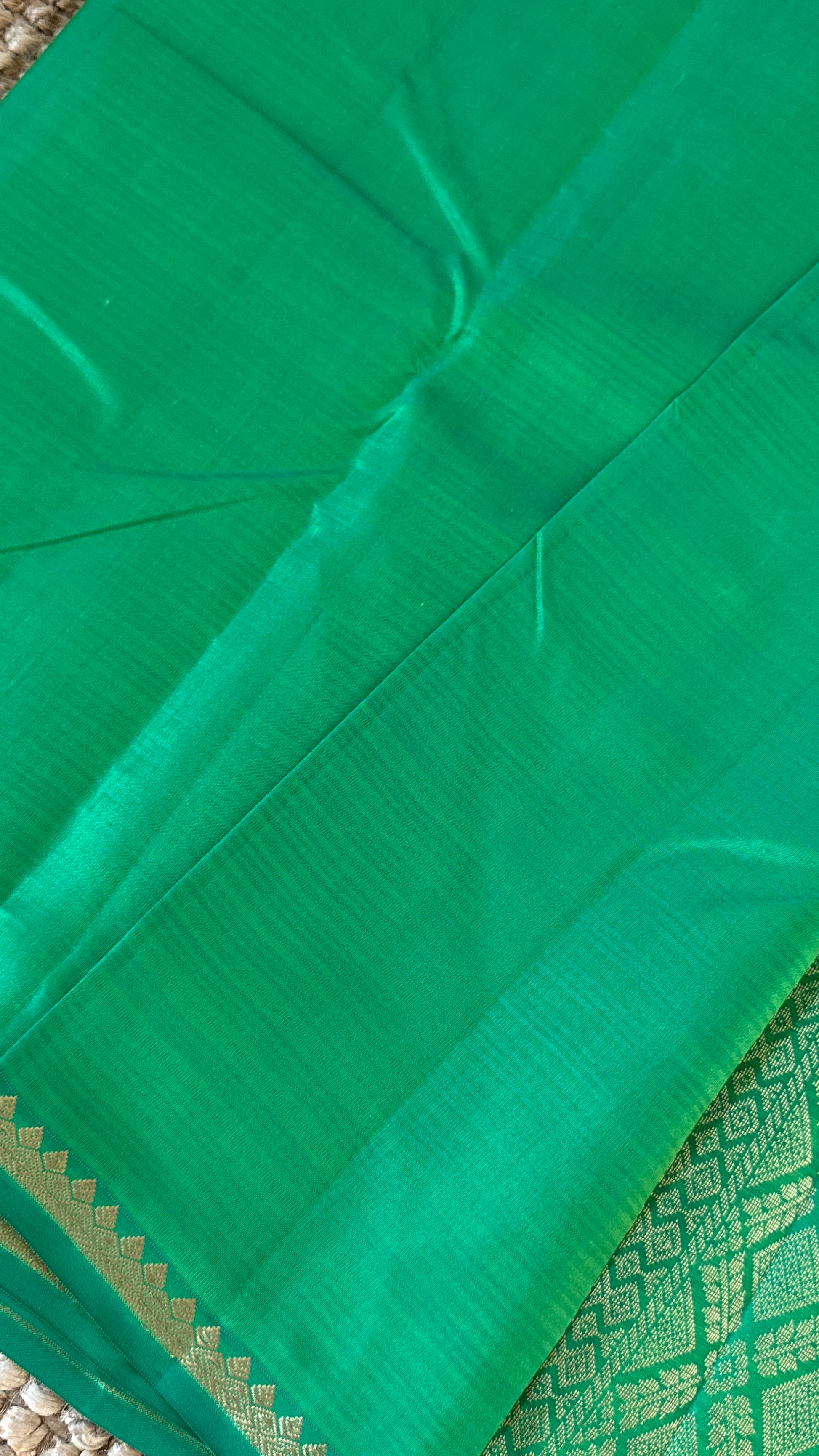 Pure Silk Handwoven Saree – Subtle Rama Green Elegance with Thin Gold Zari Borders
