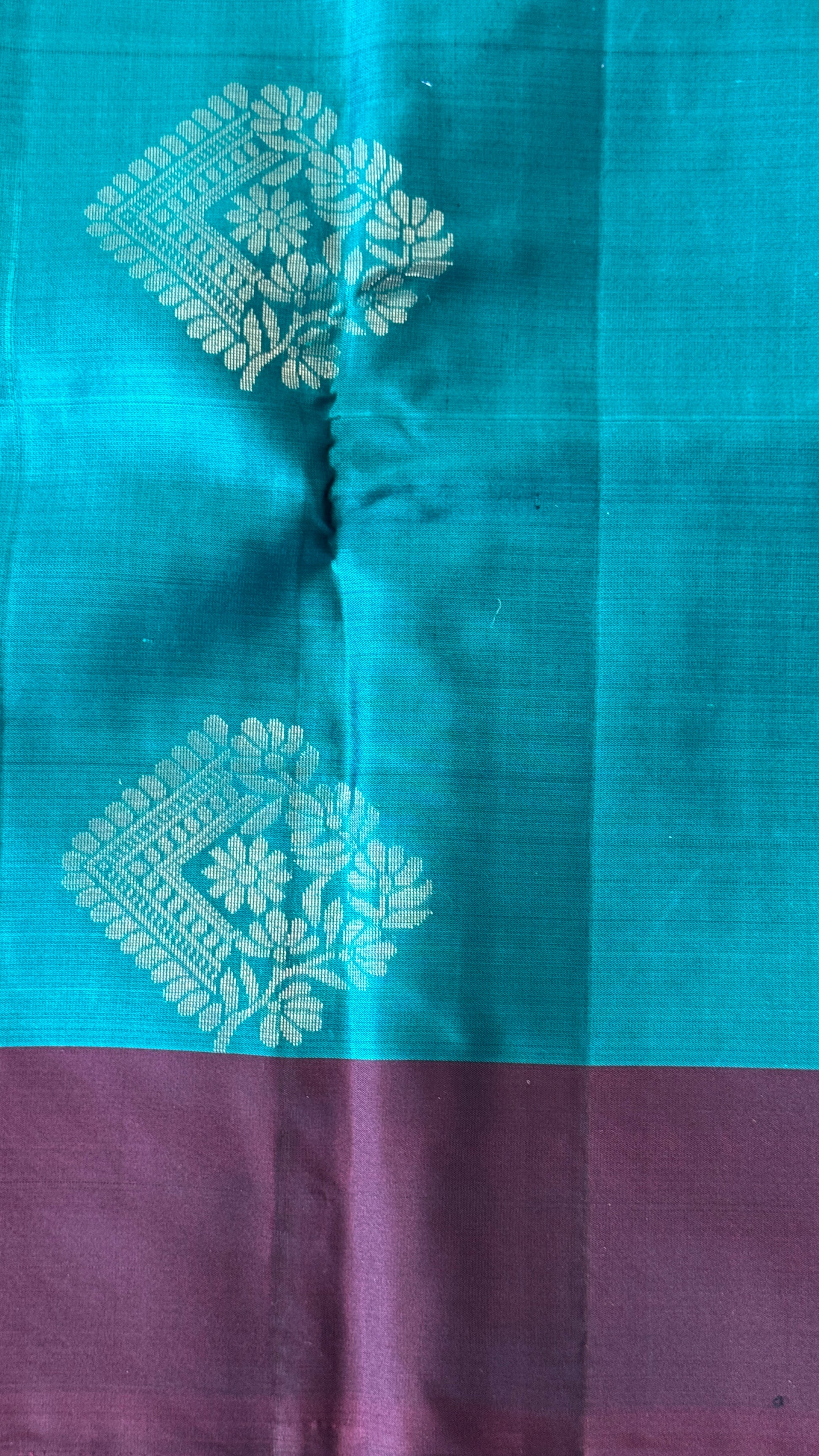 Pure Handloom Soft Silk Saree – Rama Blue with Maroon Pallu