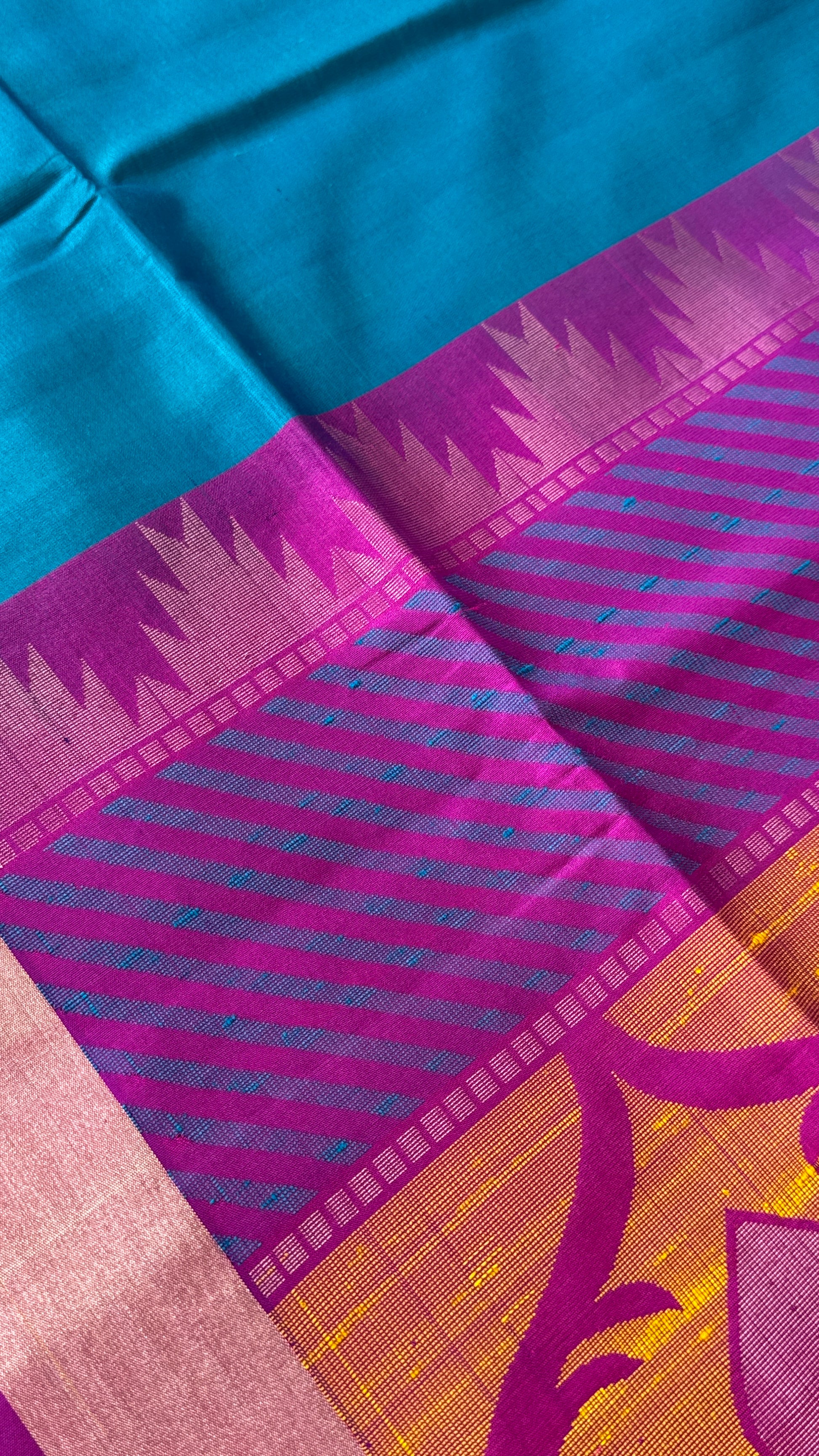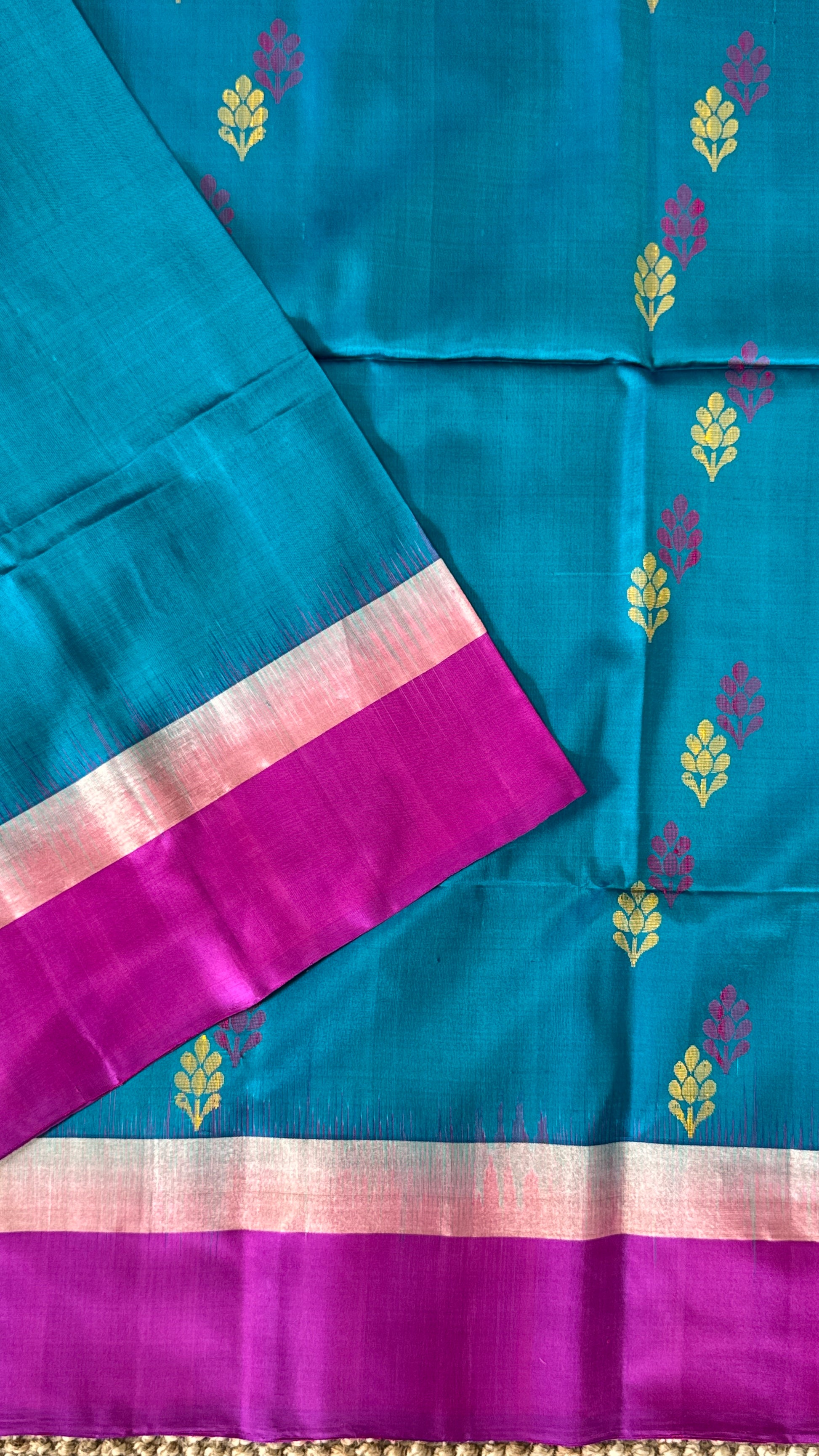 PURE SOFT SILK HANDLOOM SAREE – Blue and Pink